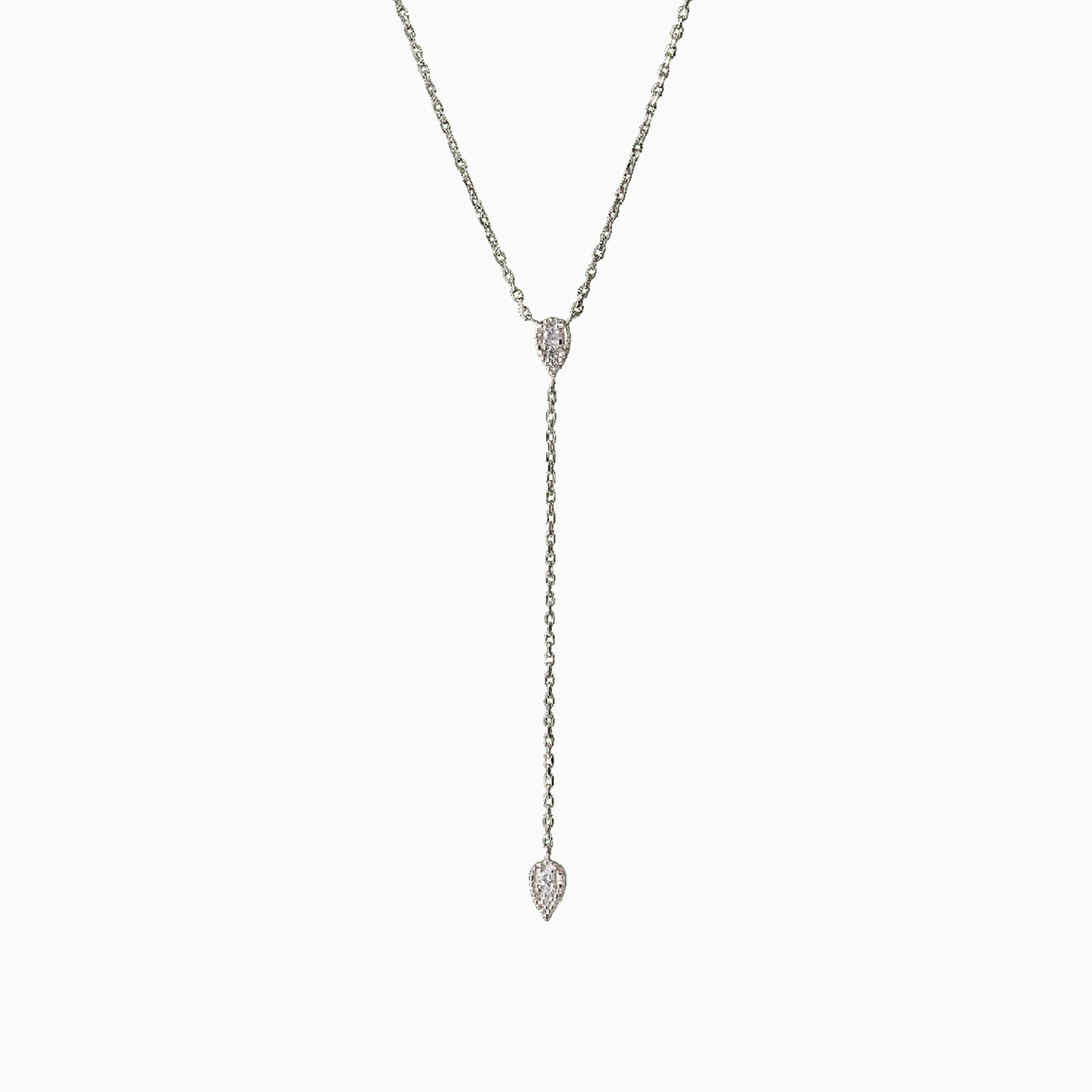Combining creativity with luxury, this drop necklace from Waves is a true expression of art. We love it for the pear-shaped cubic zirconia stone to the center and at the bottom of the drop that will elevate any plunge neckline. Crafted in sterling silver, this piece will sit perfectly for a daytime soiree or evening event.
