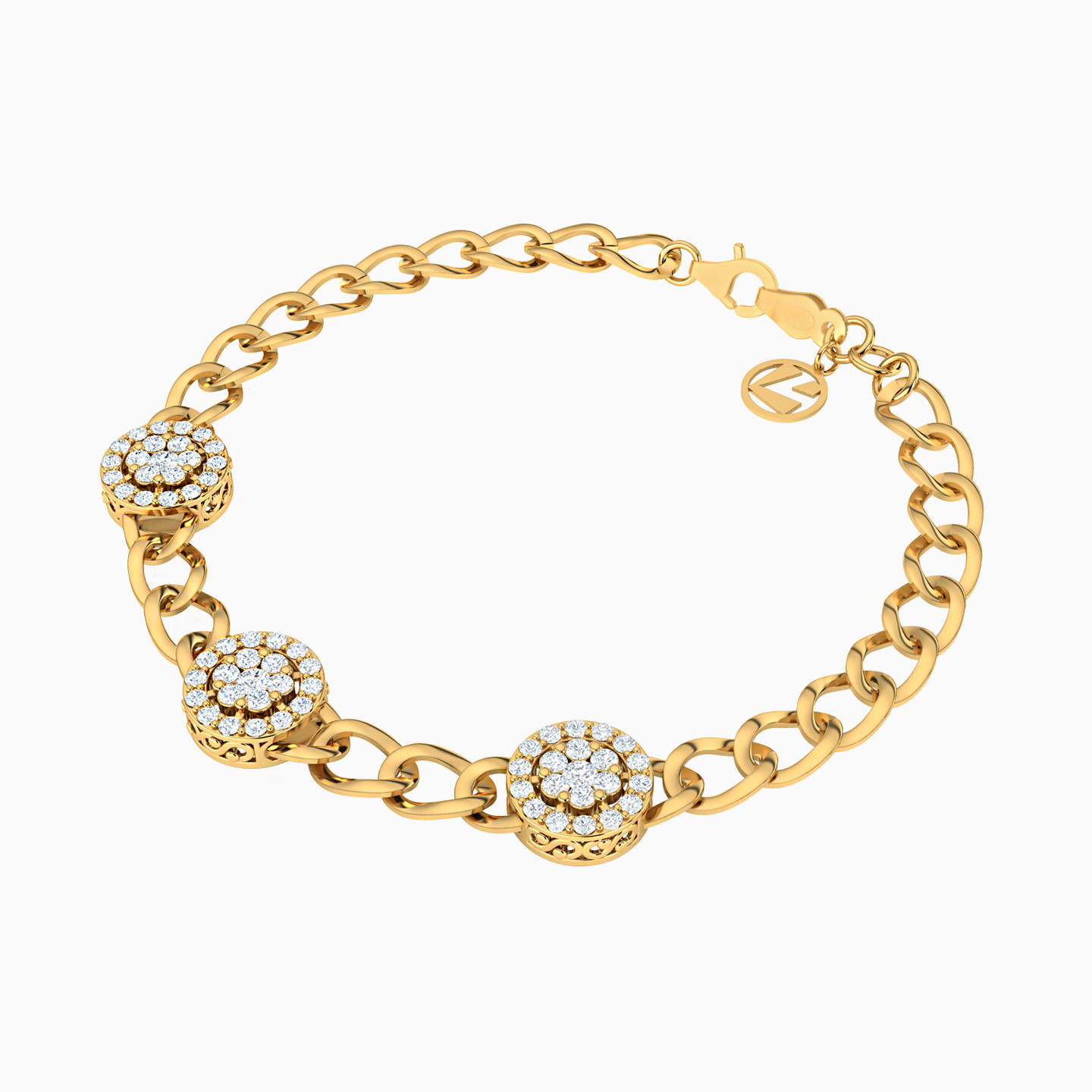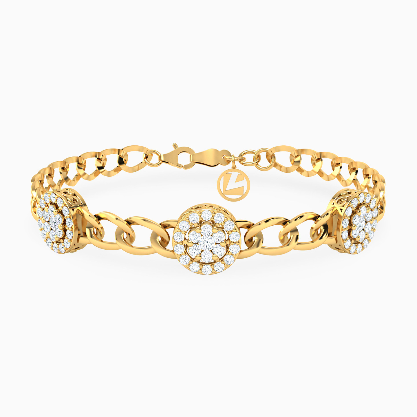Step out in style by wearing this gorgeous chain bracelet from L'azurde Gold. You'll be captivated by the trio of round motifs sparkling with cubic zirconia accents at the center of this chic 18-karat yellow gold bracelet. The ideal complement to your casual or office wardrobe, this elegant bracelet elevates any attire.