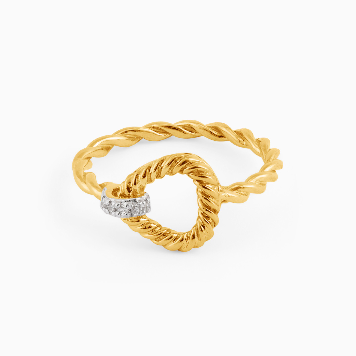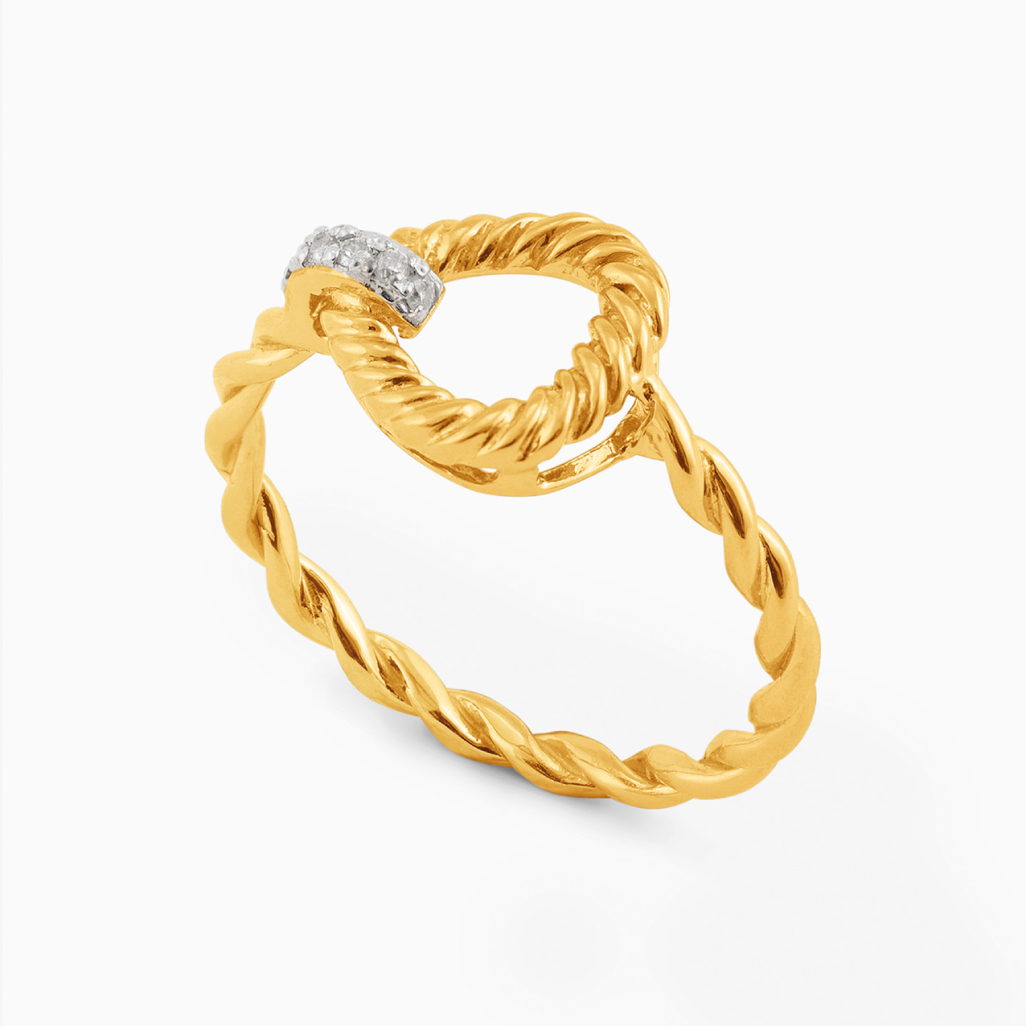 Twist it and show off your trendsetter style with this ring from L'azurde Diamonds. The twist textured 18-karat yellow gold band is accented with brilliant cut diamonds and will sit boldly on your finger. Wear it with a matching bracelet for maximum effect.