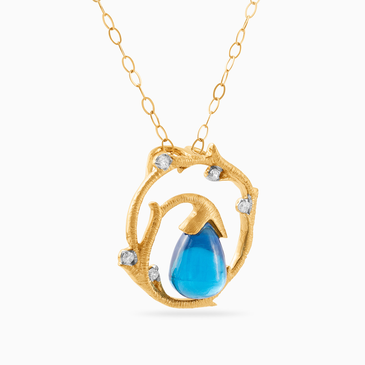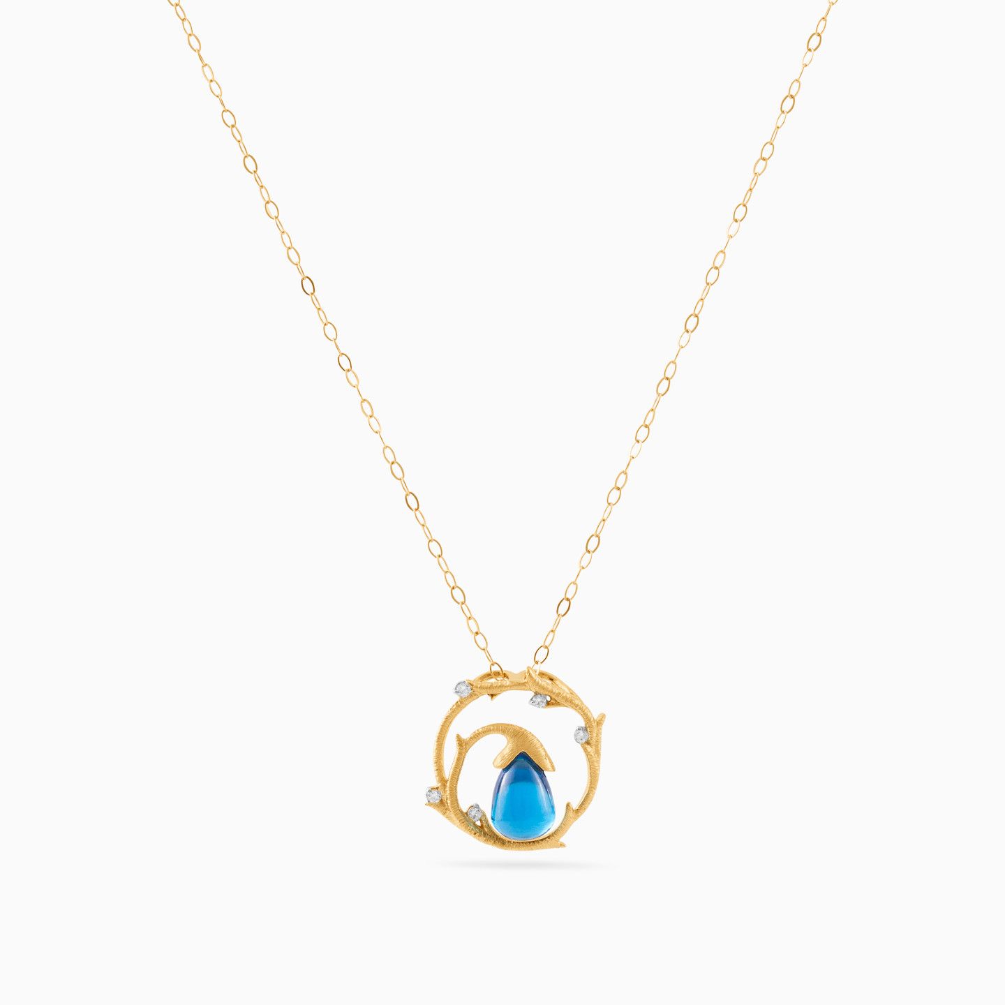 Add soft sophistication and pure elegance to any look with a gorgeous pendant that captures admiring glances. Wrapped in a luxurious gold vine with crystal accents, a breathtaking blue colored stone sits at the center of this stunning pendant from L'azurde Instyle. This 18-karat yellow gold pendant necklace is a fitting choice for important meetings, dinner dates and social events where you want to impress.