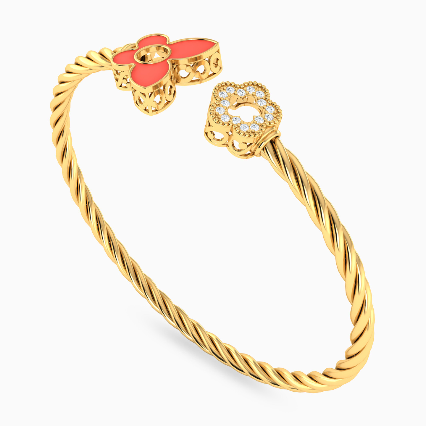 Simple and elegant, this chic twisted rope bracelet from L'azurde Gold adds the perfect amount of flair to your casual attire. Crafted in 18-karat yellow gold, this stylish bangle bracelet features a dainty coral enamel butterfly and lovely flower shimmering with cubic zirconia accents. We love this bracelet for its effortless sparkle and irresistible feminine allure.