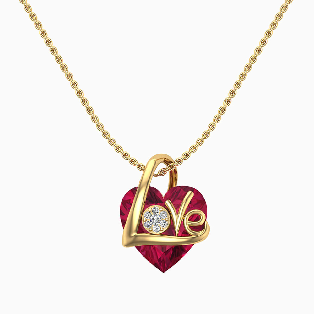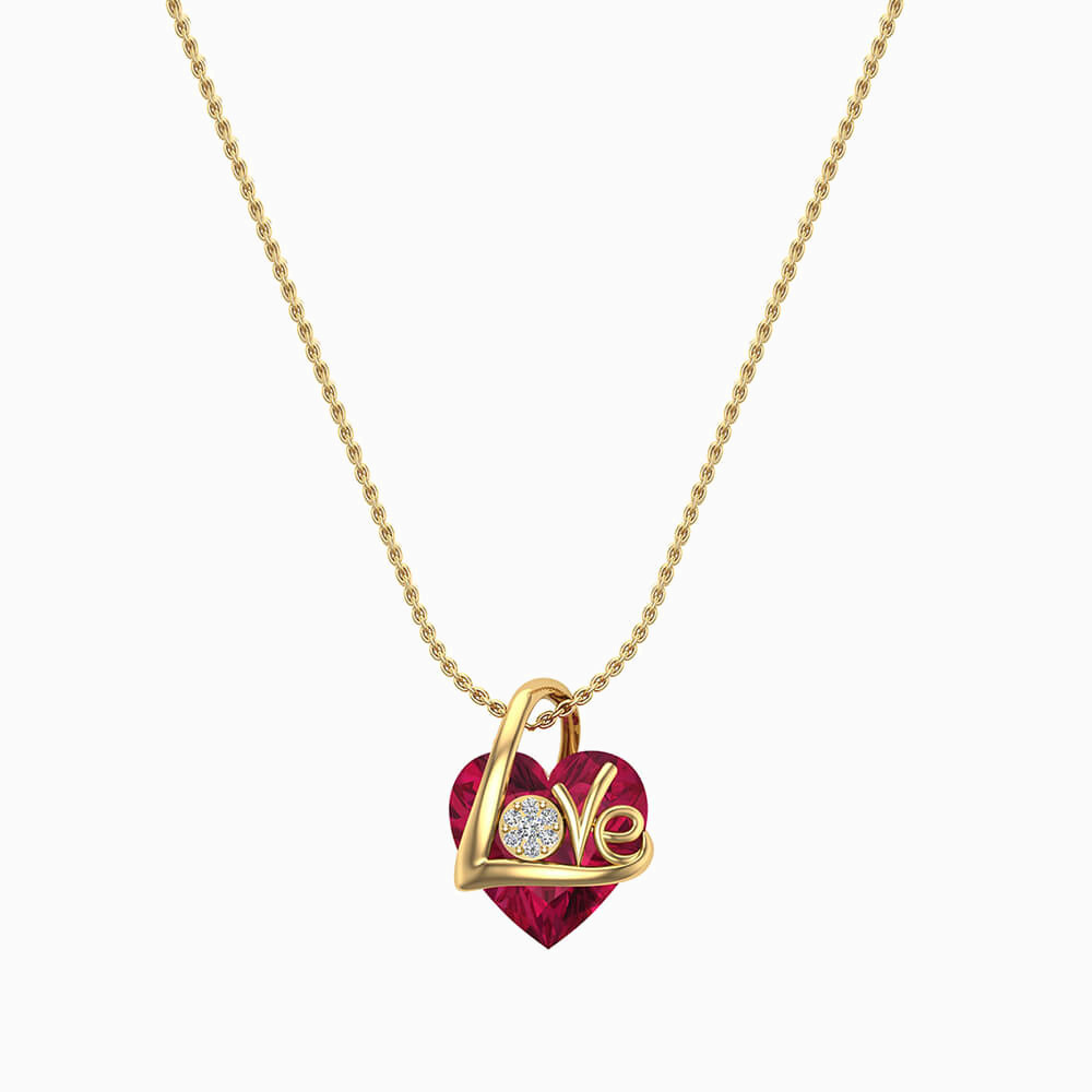 We are in love with this number from L'azurde Instyle for its captivating style. The deep red heart shaped stone is suspended from a distinct textured 18-karat yellow gold chain. With Love inscribed on the pendant and a touch of diamonds adding shine, this necklace is made to stand out amidst the crowd .
