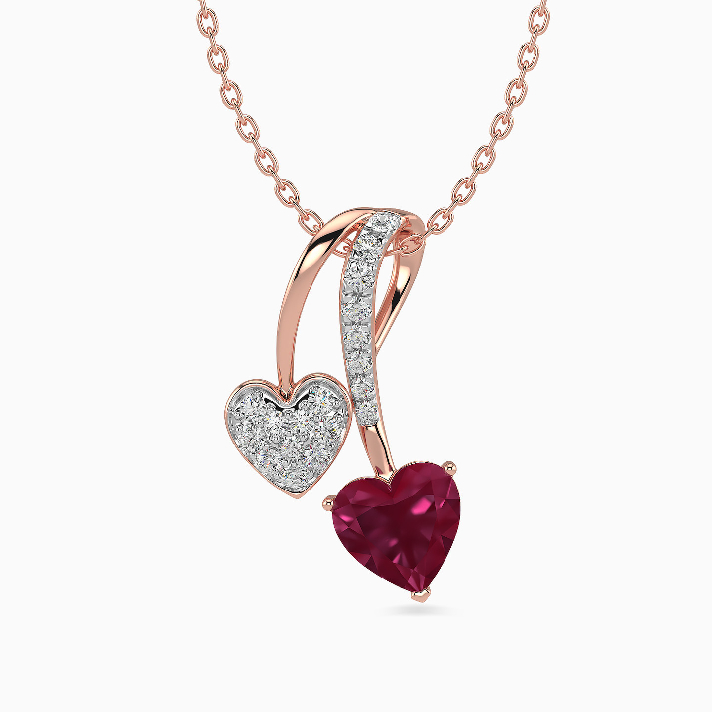 Capture the sparkle of love with this necklace from L'azurde Diamonds. The stylish pendant in 18-karat rose gold is decked with brilliant cut diamonds and studded with a heart shaped red stone. Delicately suspended from a dainty chain, this number will look absolutely stunning worn over a low neckline.