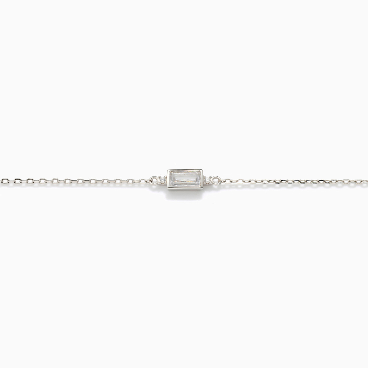 Baguette Cubic Zirconia Sterling Silver Chain Bracelet