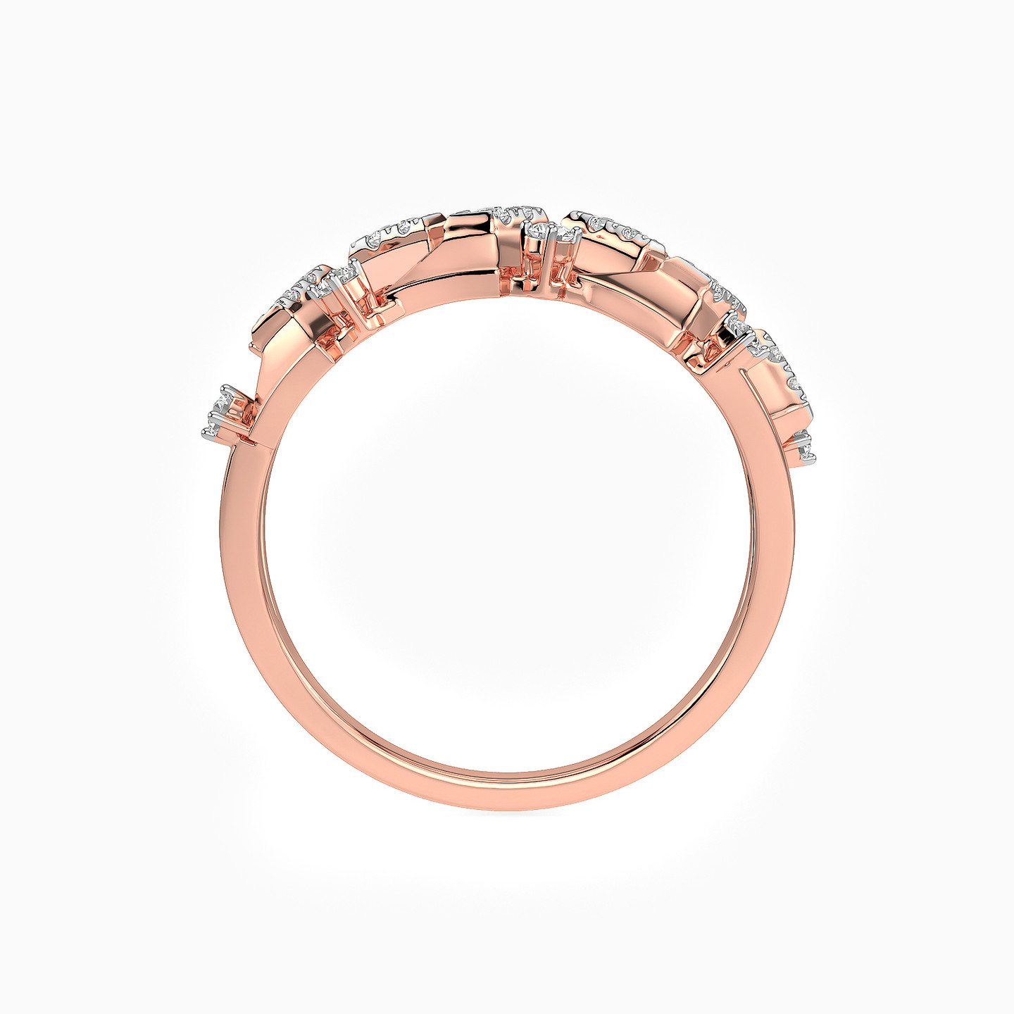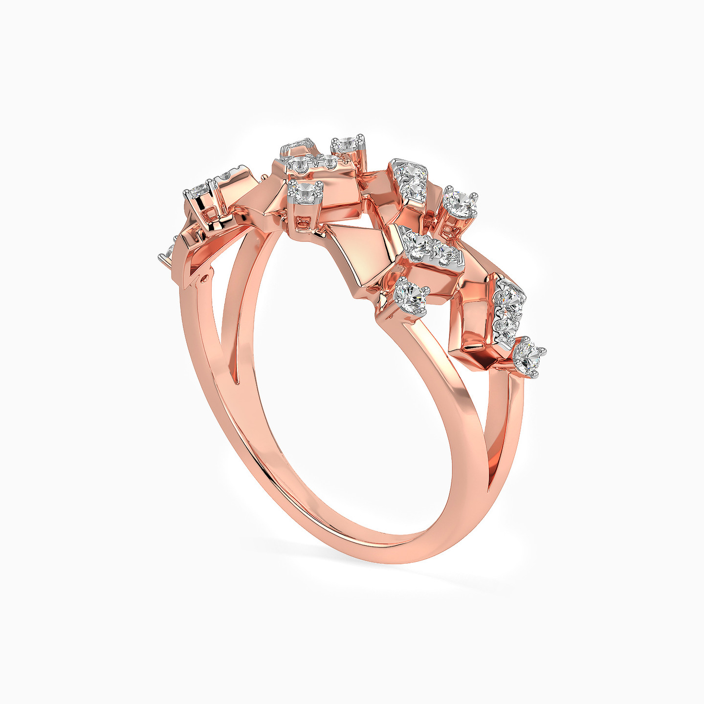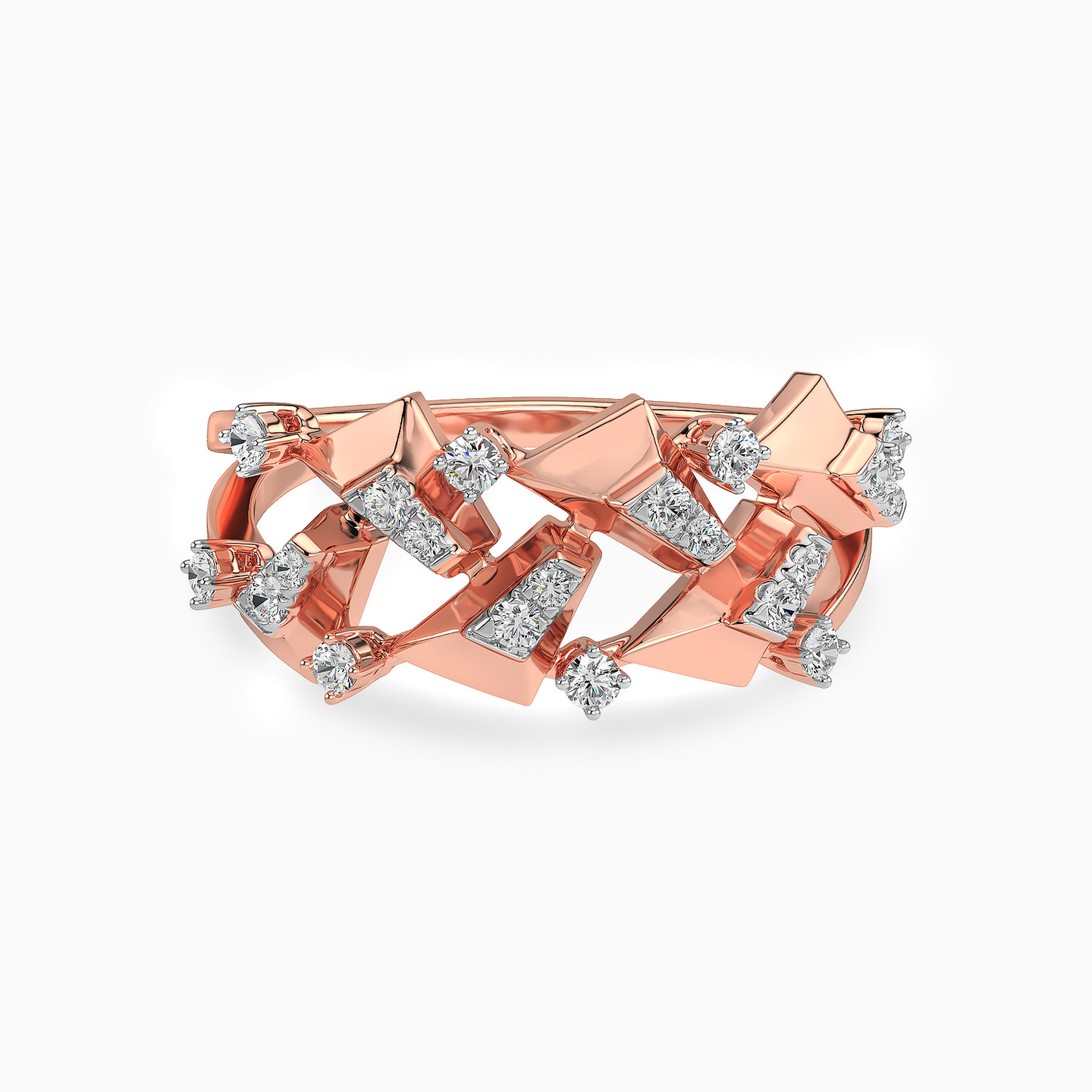 The unique shapes adorning this ring are highlighted by dazzling diamonds that give it a luxe look to turn heads. Meticulously crafted in 18-karat rose gold, this statement ring boasts 0.25-carat brilliant-cut diamonds. This ring works as nicely for a dressy daytime look as it does for evening wear.