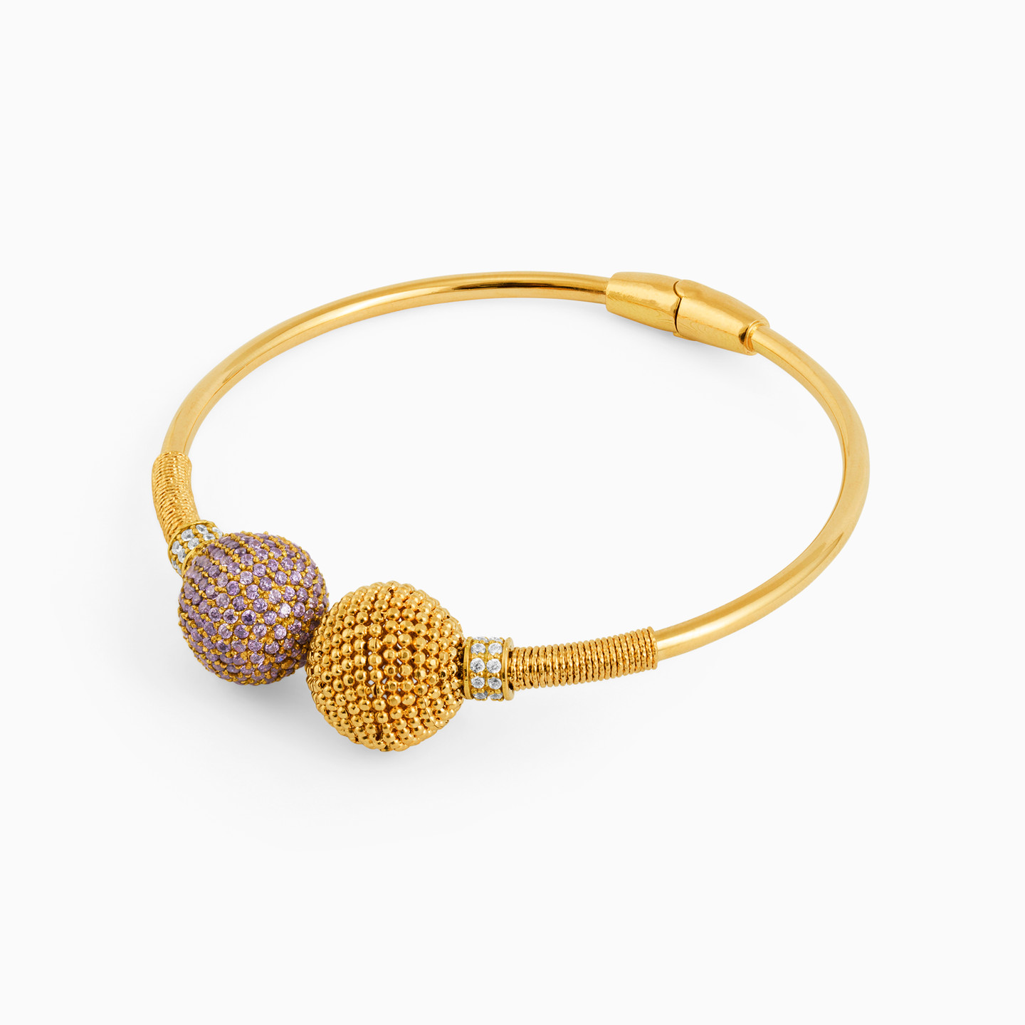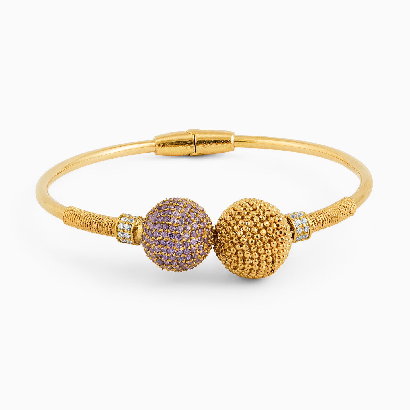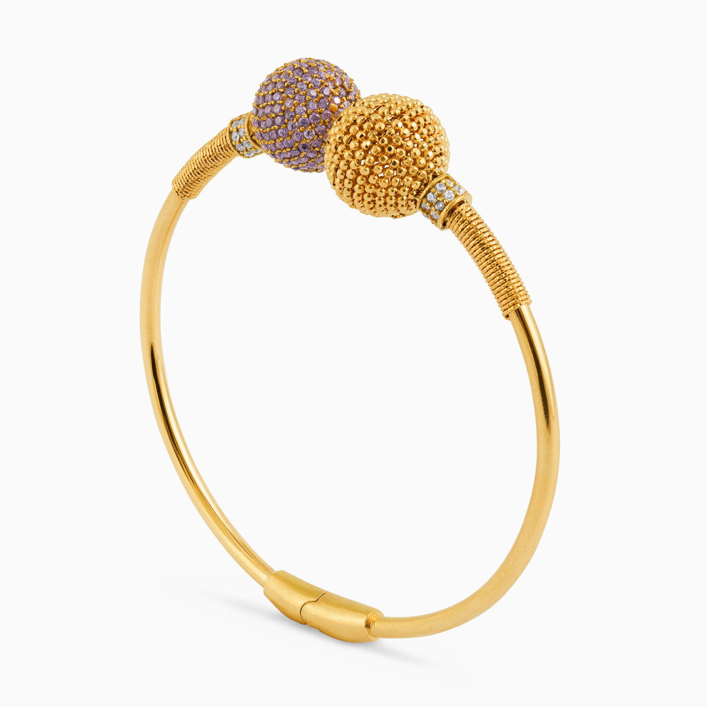 Beaded Purple Stone Bangle Bracelet in 18K Gold