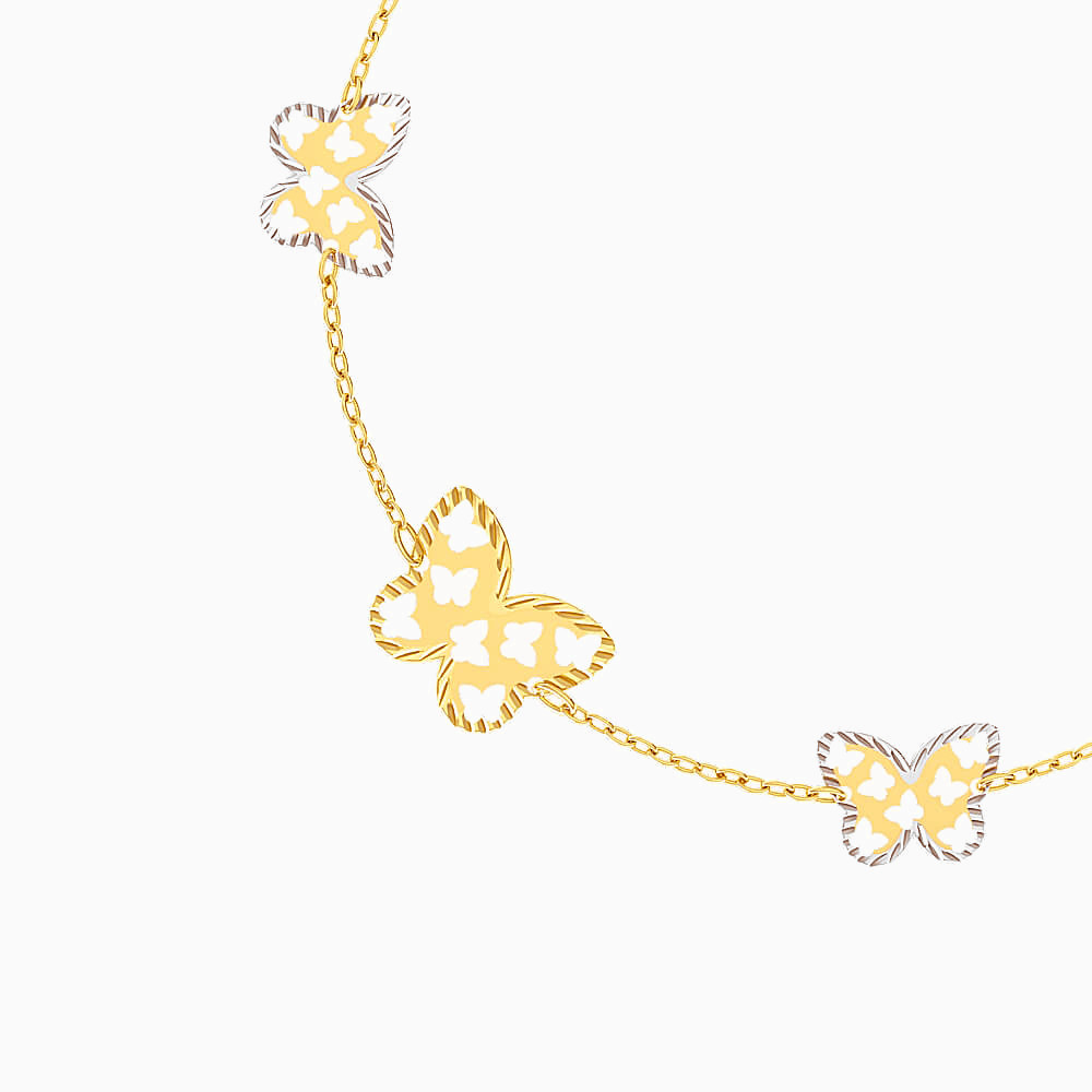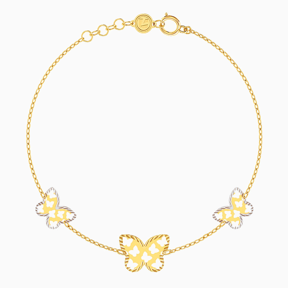 Fly free, glow softly. This Miss L’ bracelet features three golden butterflies adorned with soft white details, gently fluttering across a delicate chain. A graceful symbol of transformation, hope, and light-hearted beauty, it’s the perfect piece to gift or to wear as a reminder that every journey begins with a gentle flight.