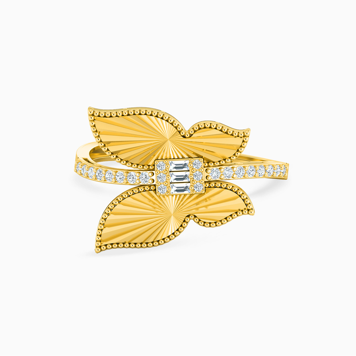 Combining femininity with unmatched luxury, this butterfly ring from L'azurde Gold is a celebration of creativity. The slim 21-karat yellow gold band is dotted with sparkling stones as it centers through the textured butterfly wings. Wear this piece solo and watch it accentuate your outfit at a classy daytime or evening do.