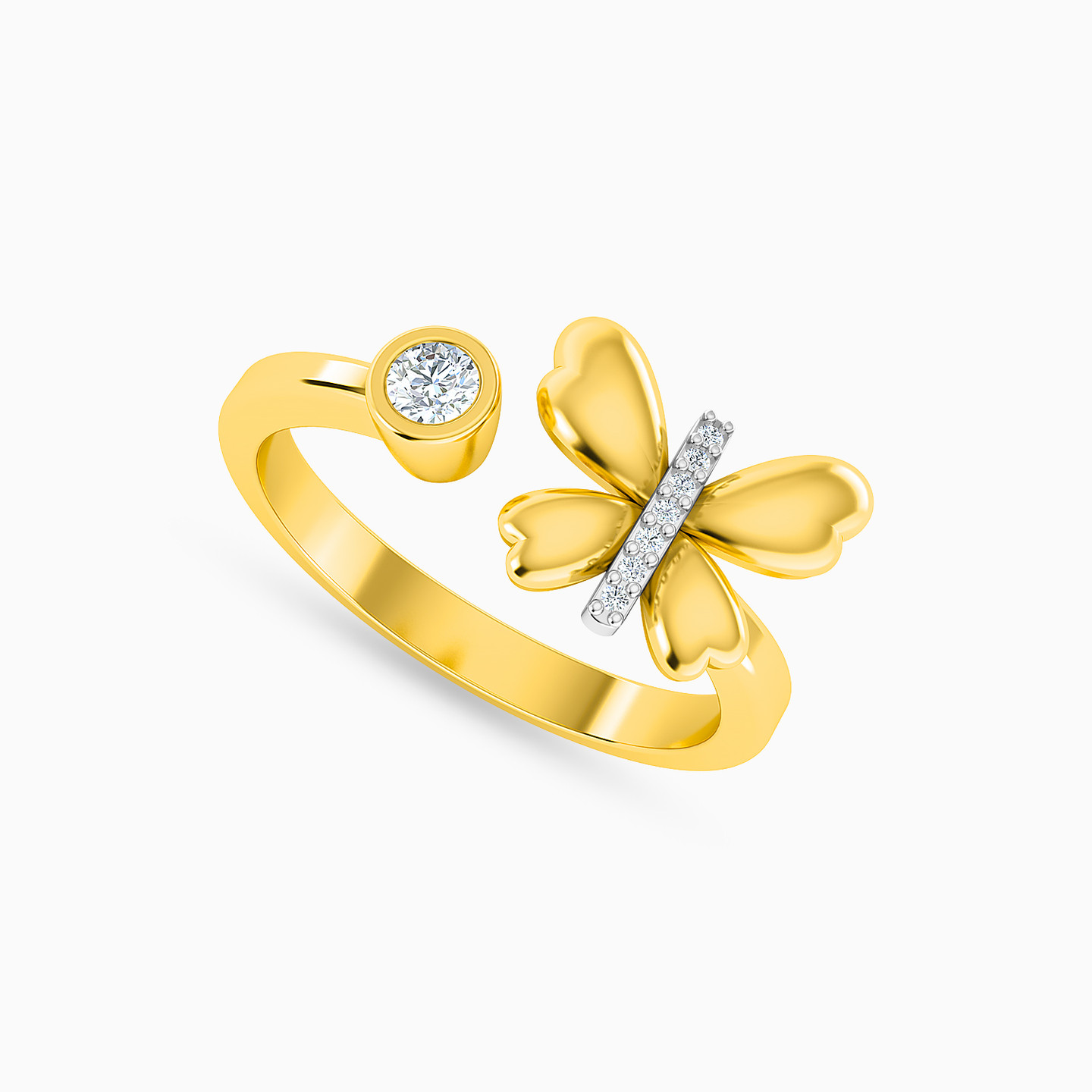Lending feminine appeal to your everyday look, this butterfly ring from Miss L’ brings out grace with sophistication. We love the petite brilliant cut diamond accent and the slim 18-karat yellow gold band. Pair this with a matching bracelet for a stylish finish.