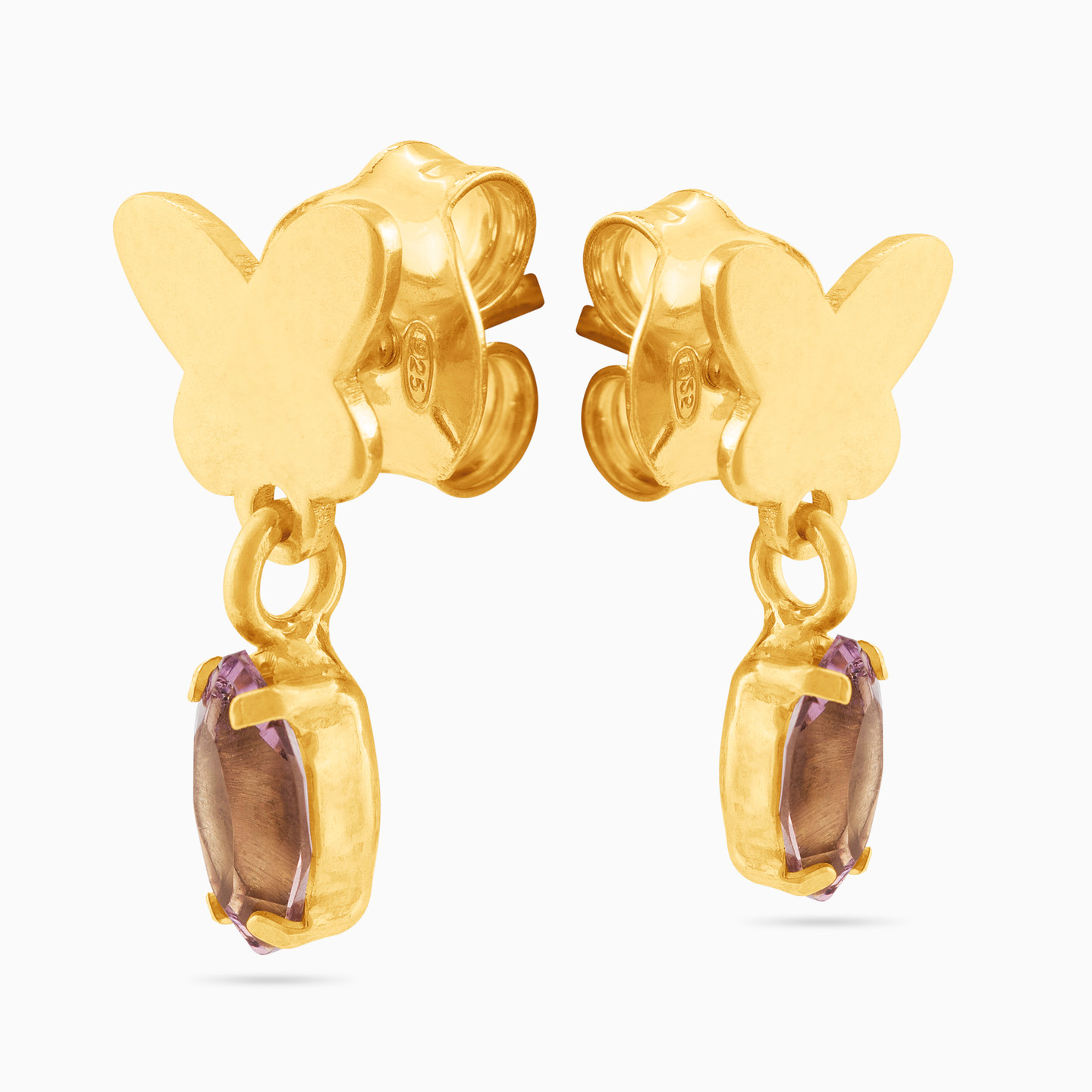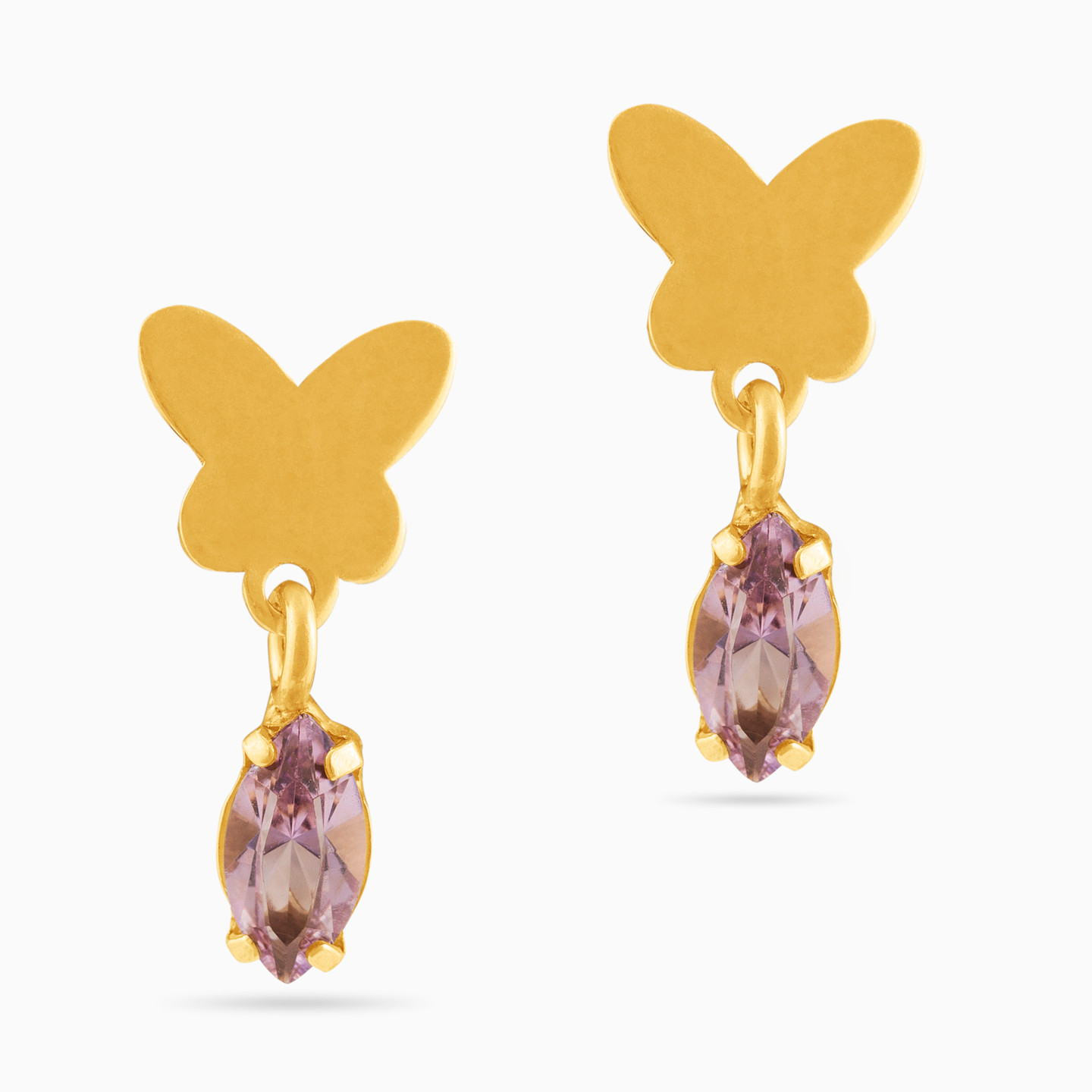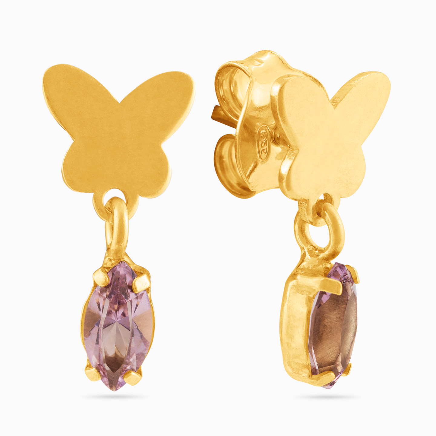 Butterfly Purple Stone Gold Plated Drop Earrings