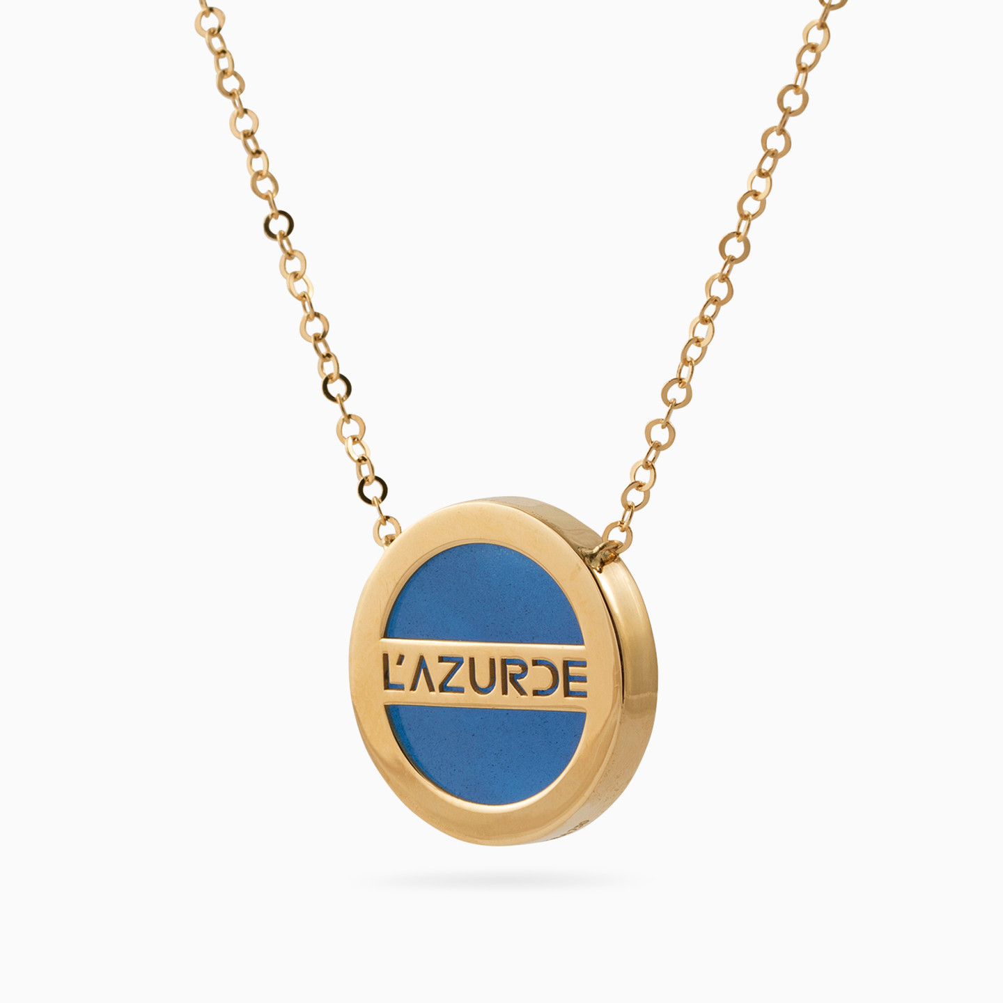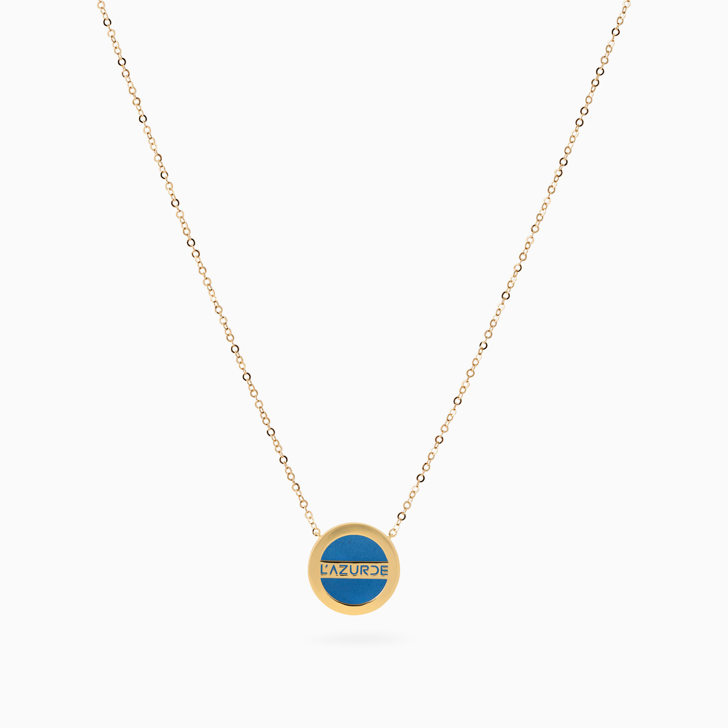 Spell out chic style with this iconic necklace from L'azurde Gold. The 18-karat yellow gold pendant is embossed with the brand name and decked with a blue accent. Suspended from a dainty chain, this number can be worn solo or layered to suit your outfit.