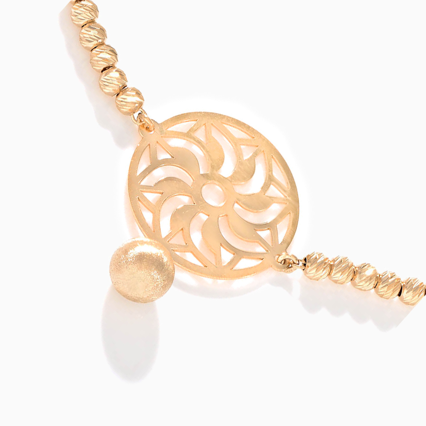 You’re sure to garner tons of compliments when you step out donning this anklet from L’azurde Gold. Cast in 21-karat yellow gold, this piece features tiny beads that lead up to an ornament centerpiece designed with cut work. Finished with a spring clasp closure, this anklet will make a fitting choice of wear with traditional or fusion outfits.