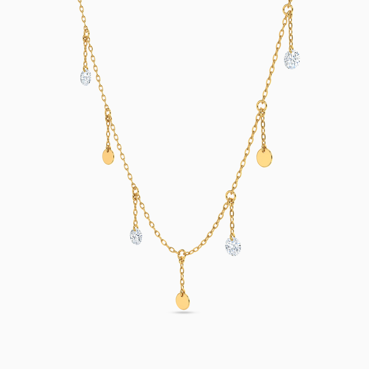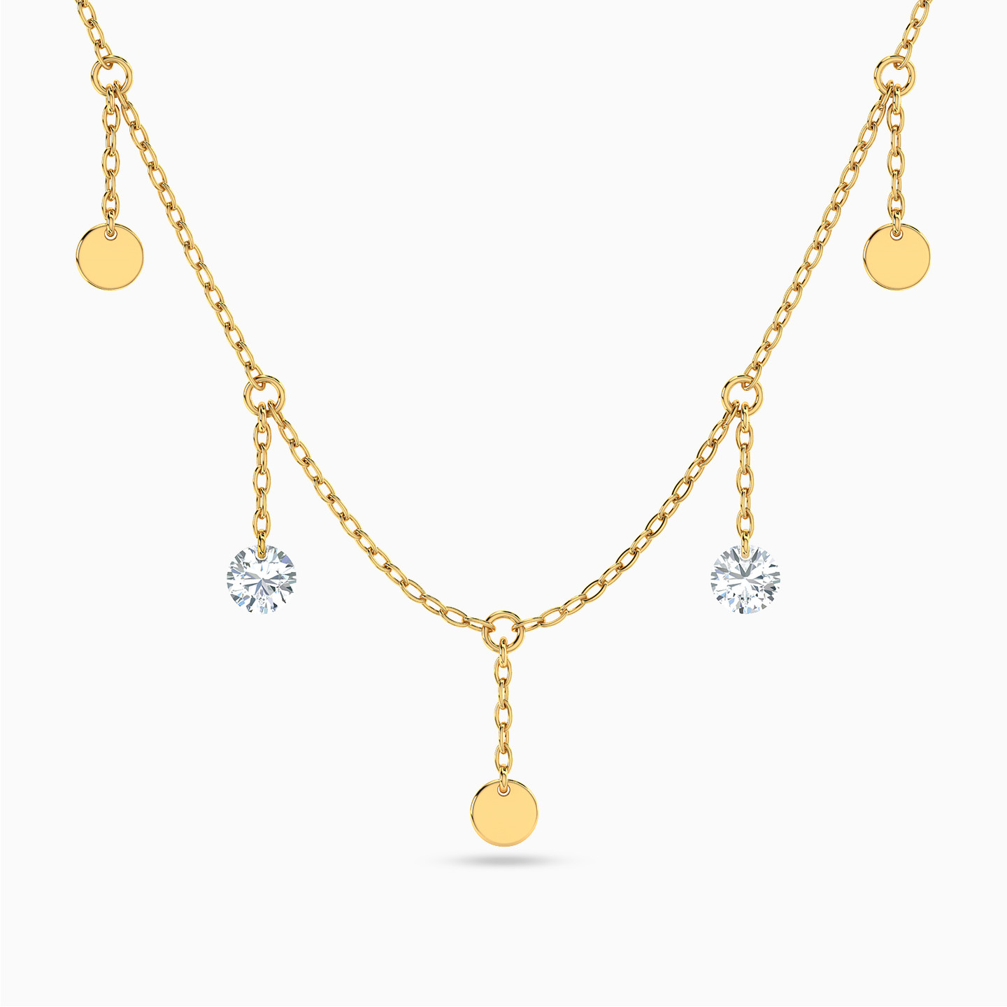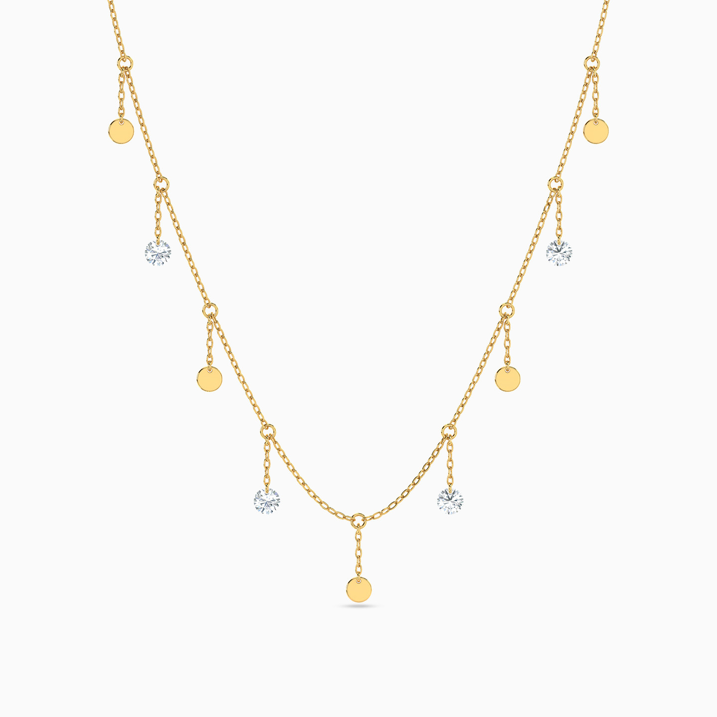 Let the feminine magic take its course with this delicate necklace from L'azurde Instyle. Dotted with circle and stone charms on an 18-karat yellow gold chain, this piece adds subtle elegance without being too loud. Wear yours to accentuate a round neckline.