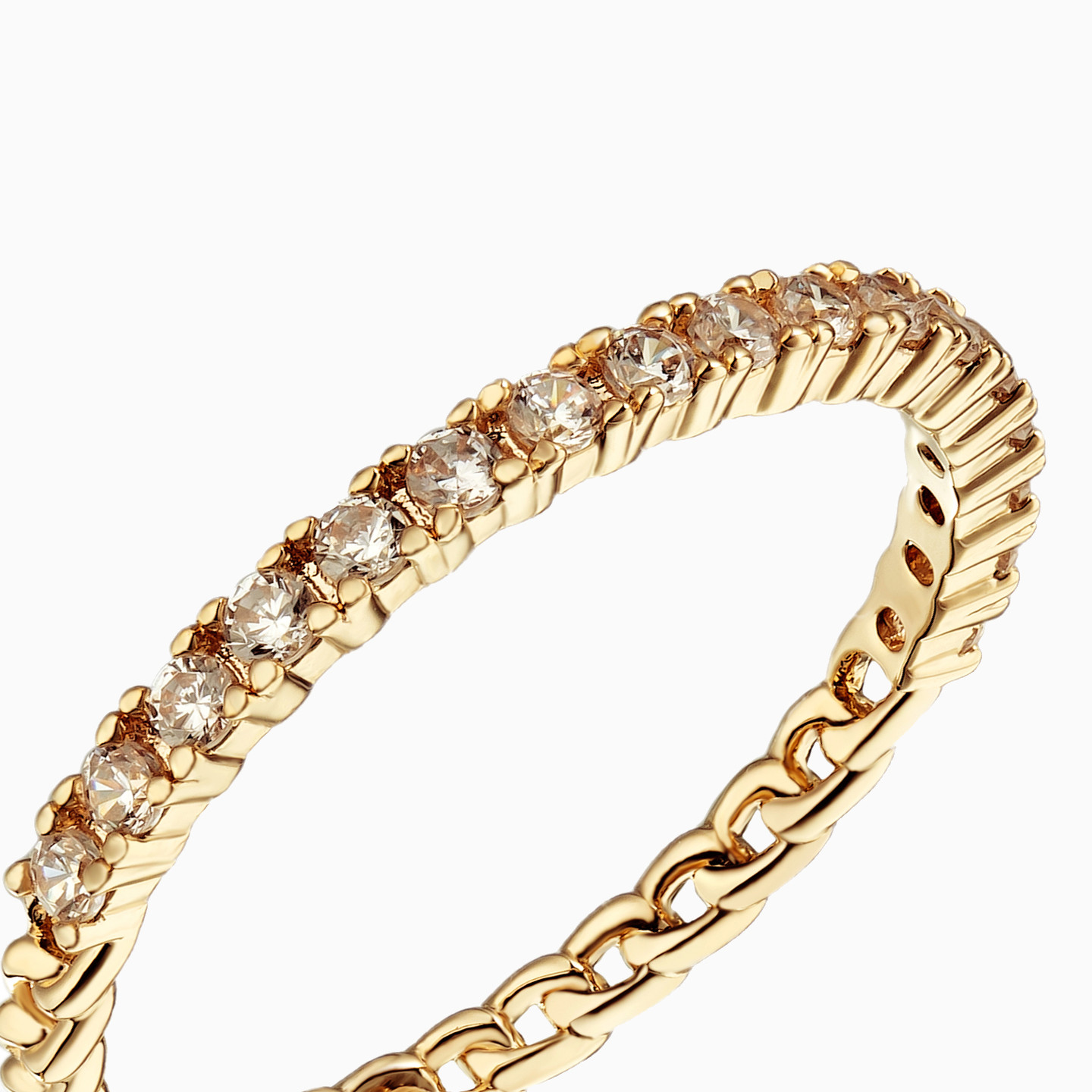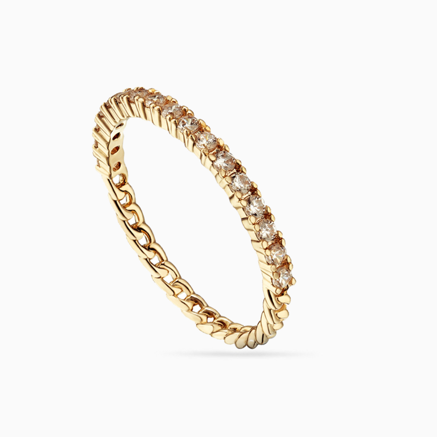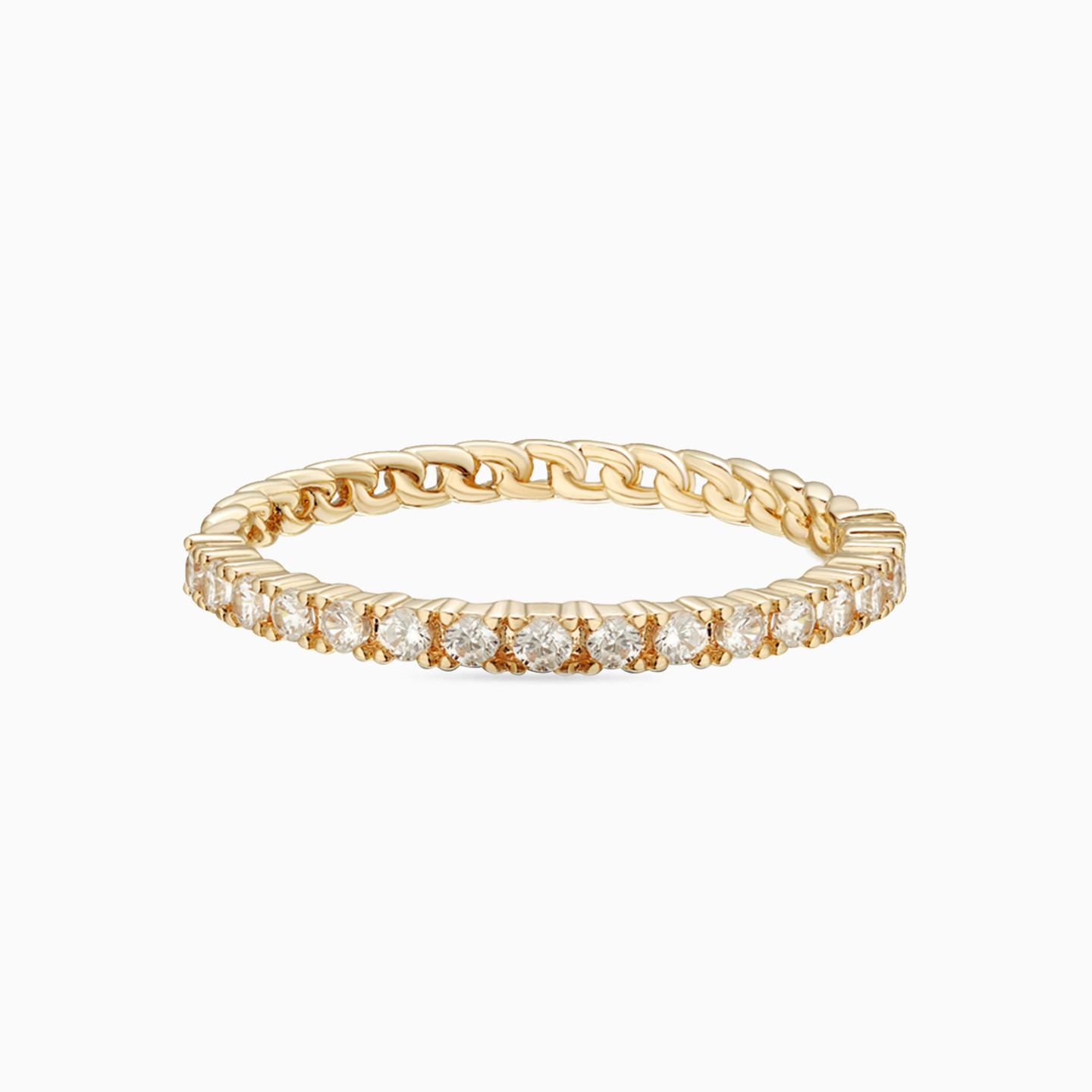 Nothing works its essence as beautifully as this classic piece from Waves. An essential for every woman, this eternity band is dotted with petite cubic zirconia stones and cast in 18-karat yellow gold plating for a sleek finish. It can be styled to match up any look - solo, stacked with similar bands or paired with a stone ring from our collection.