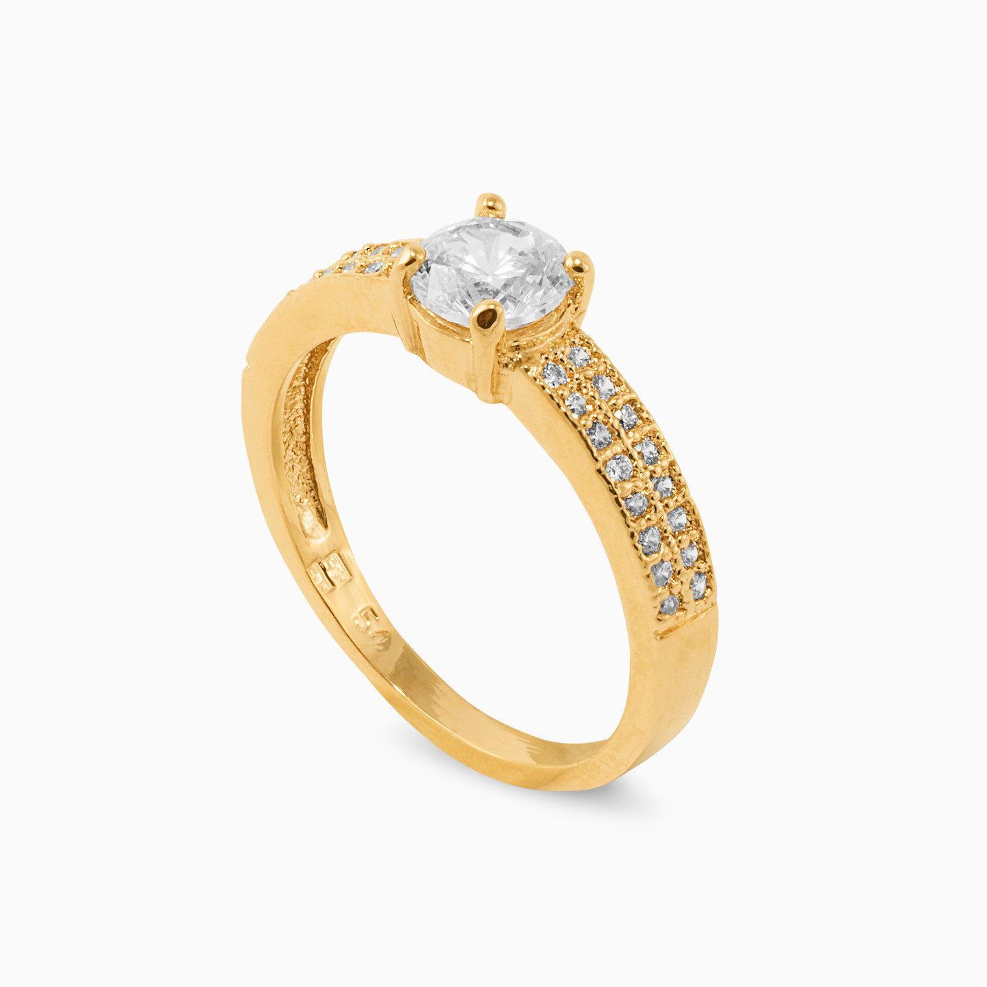 Express your confidence in style with this dazzling ring from Waves. Finished in 18-karat yellow gold plating, the band features double rows studded with zirconia and a brilliant stone to the center. It will instantly add a distinct sparkle to your look and work beautifully worn solo as an everyday piece of jewelry.