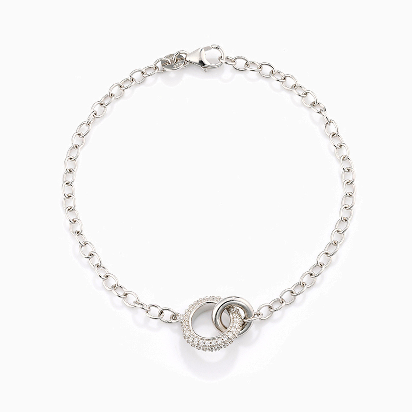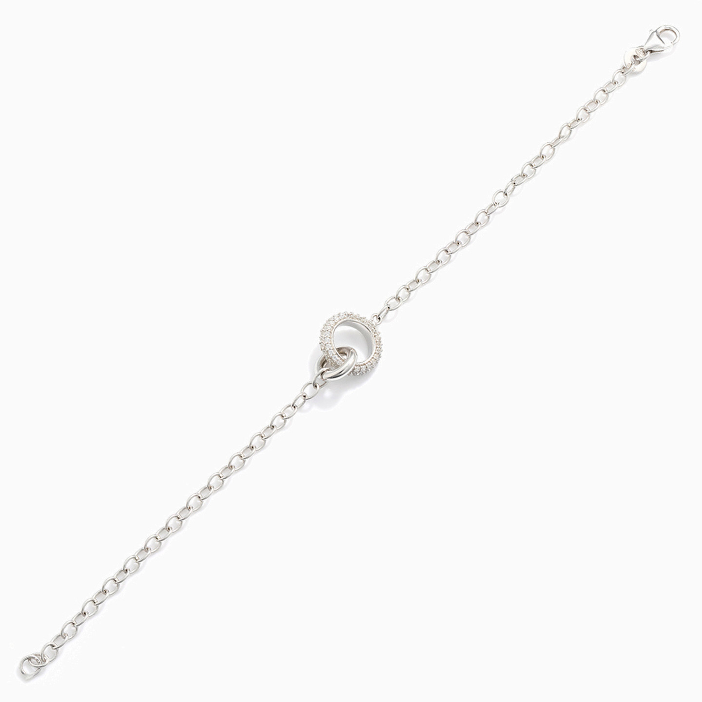 Circle Cubic Zirconia Sterling Silver Chain Bracelet