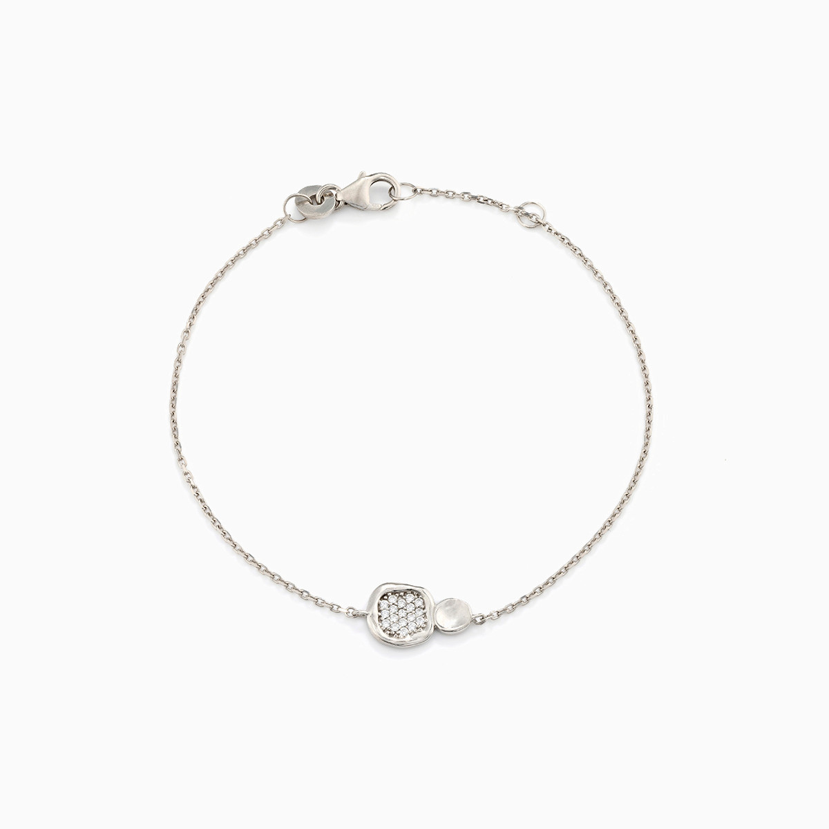 Lending a touch of effortless elegance to your daily outfits, this bracelet from Waves is a classic buy. It is crafted in sterling silver and features a dainty chain that holds a cubic zirconia studded round motif to the center. Style it with any formal to casual attire, on its own or stacked with similar bracelets to add more volume to your wrist.
