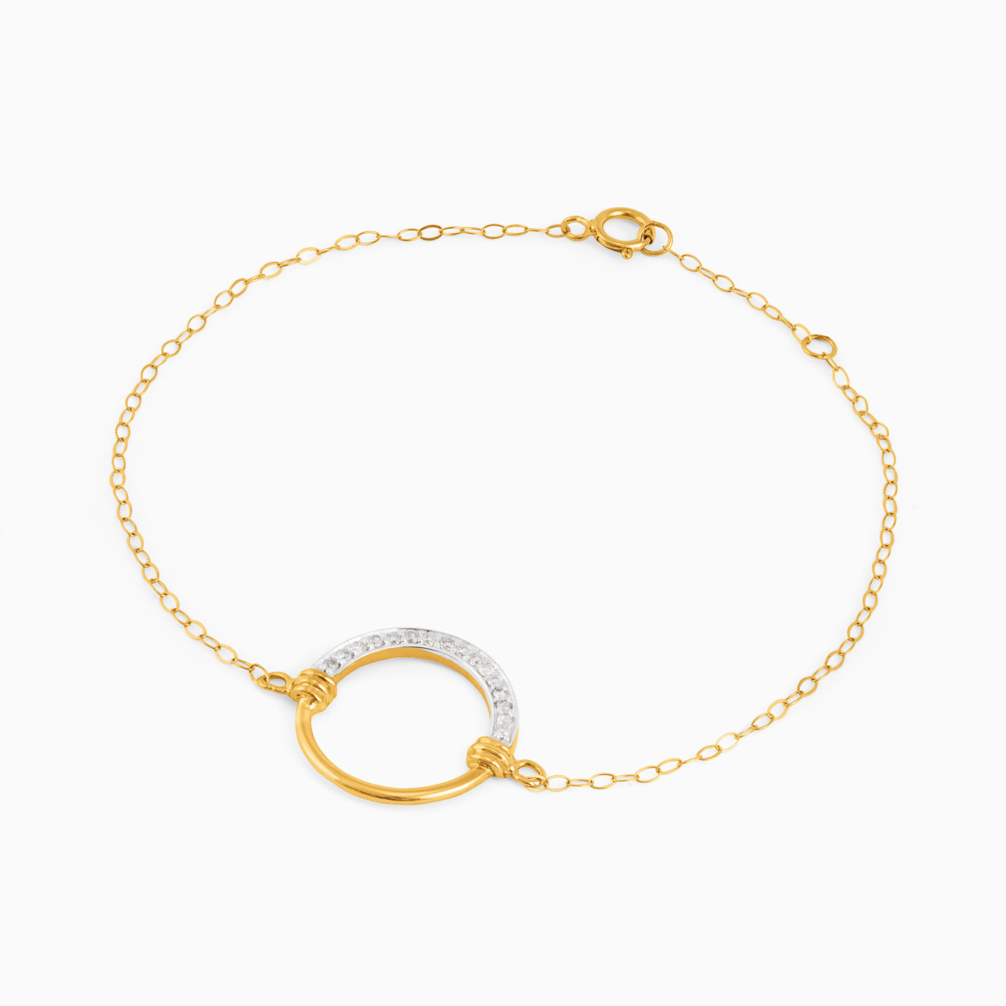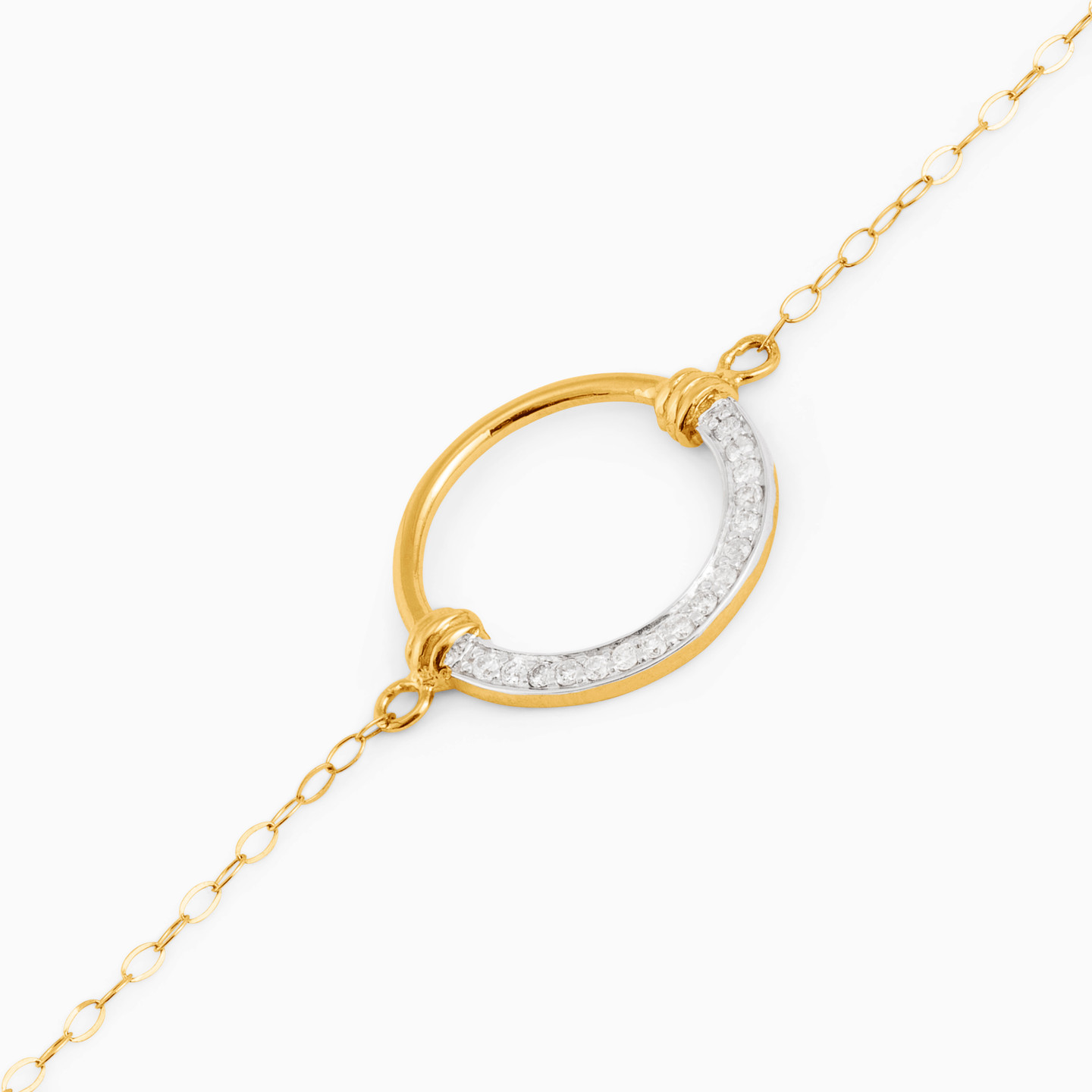 Say hello to the circle of sparkle with this bracelet from L'azurde Diamonds. We love the open circle motif that's studded with brilliant cut diamonds to the lower half and accented with a textured accent. Gracefully placed on a slim 18-karat yellow gold chain, this number will work itself beautifully into your everyday wardrobe and can be worn solo or with a matching ring.