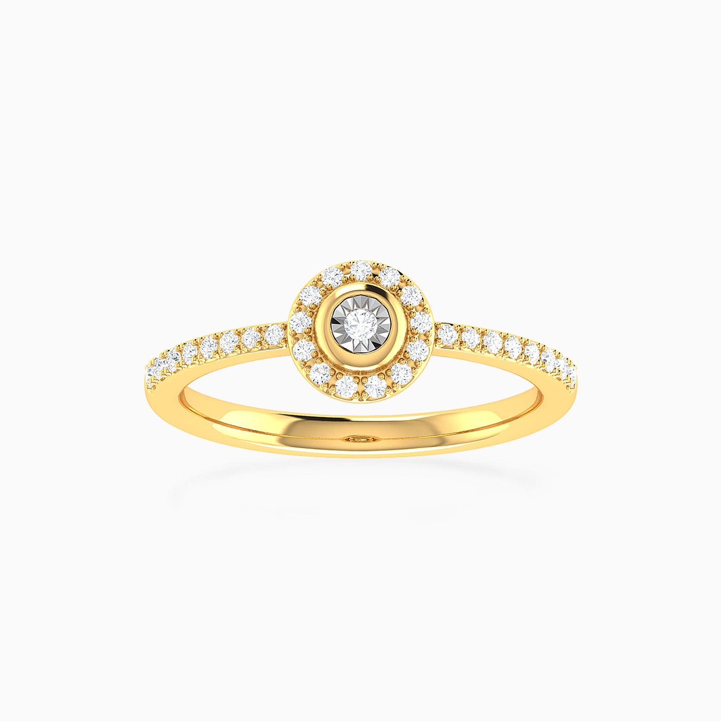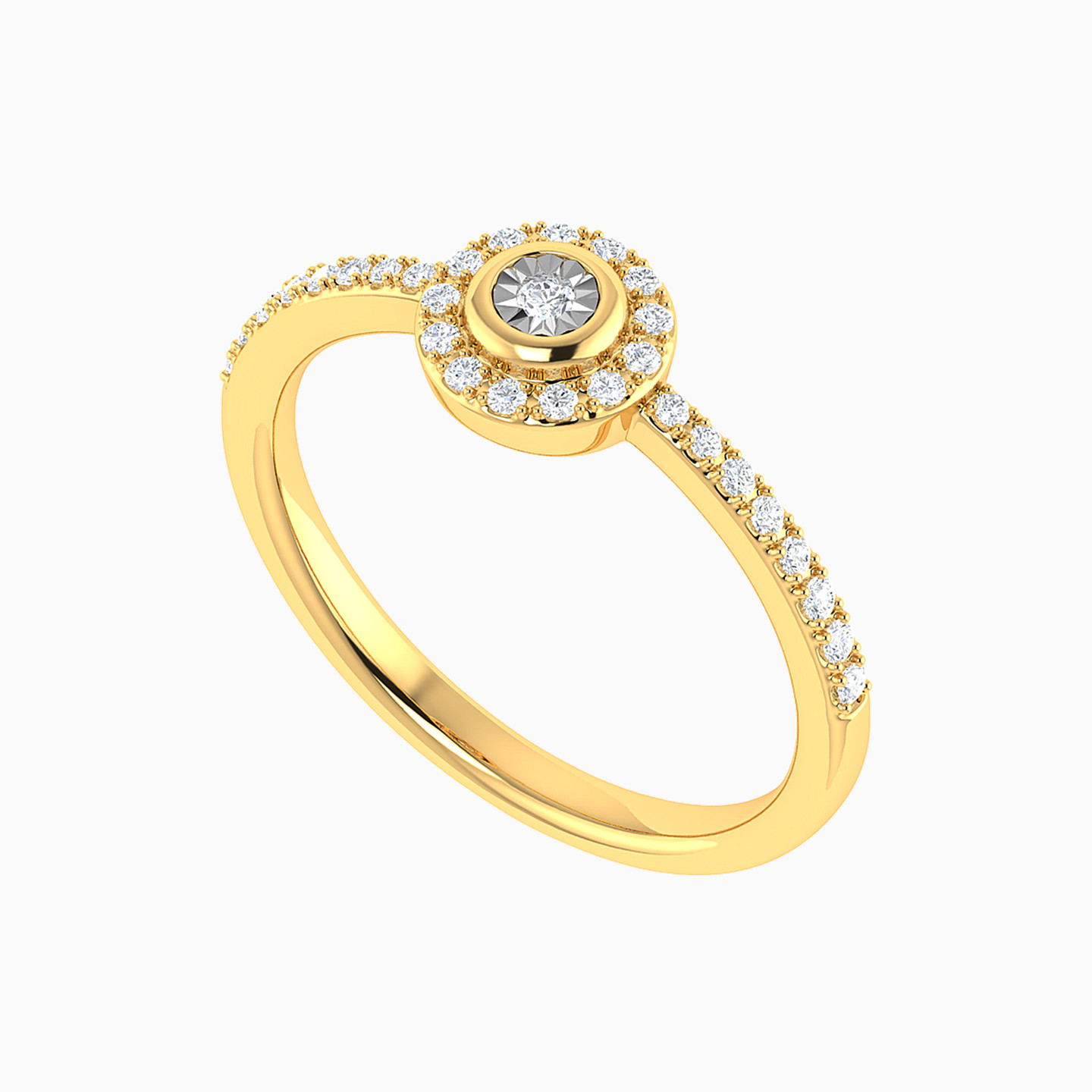 Every day calls for some sparkle and this elegant diamond ring from L'azurde Diamonds does not disappoint. Shimmering with 0.16-carat brilliant cut diamonds prong-set within the band and a center diamond framed in a magnificent halo, this minimalist ring has maximum beauty. We love how this everyday 18-karat yellow gold ring adds luxury to an office meeting or the social event of the year.