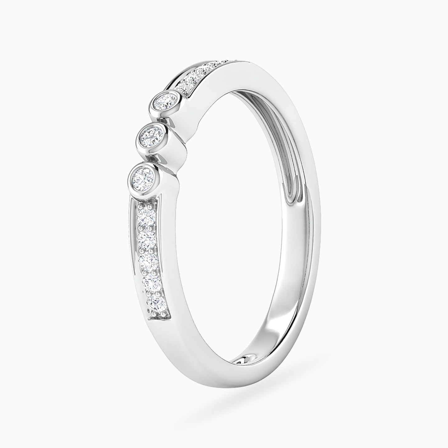 Capture admiring glances with these gorgeous diamond twin rings from L'azurde Diamonds. Crafted in 18-karat white gold, each ring is lined with 0.32-carat channel-set diamonds that sparkle with your every move. At the center of one band is a round cluster of diamonds flanked by bezel-set diamond accents, while the other band features a trio of bezel-set diamonds at the center to complete the look. Wear these rings together or individually to bring eye-catching brilliance to every outfit.