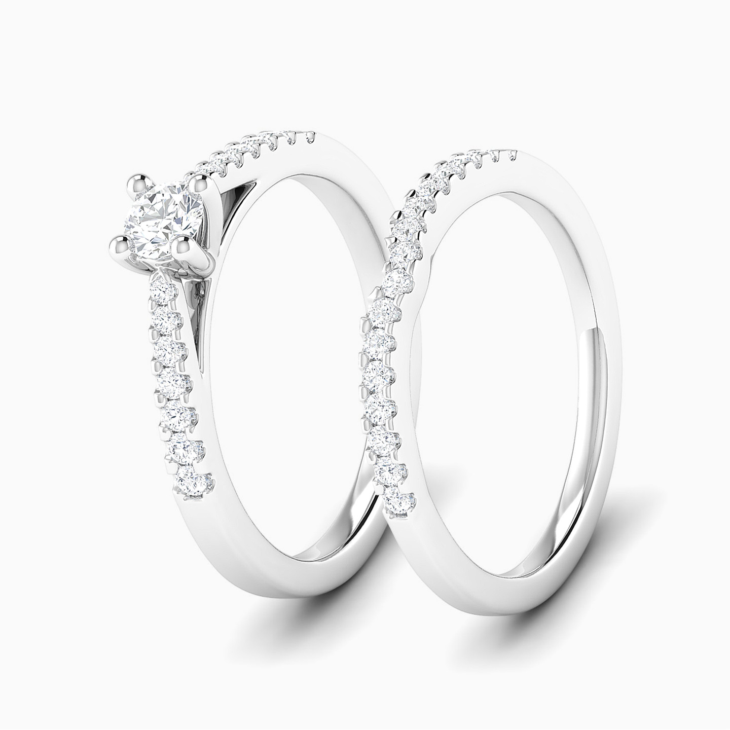 Timeless and elegant, this gorgeous twin ring set from L'azurde Diamonds is sure to take her breath away. Beautifully crafted to fit together, these lustrous 18-karat white gold twin rings feature 0.60-carats of brilliant cut diamonds shimmering along the bands with a show-stopping prong-set diamond at the center. What a stunning ring set to capture her hand and heart forever.
