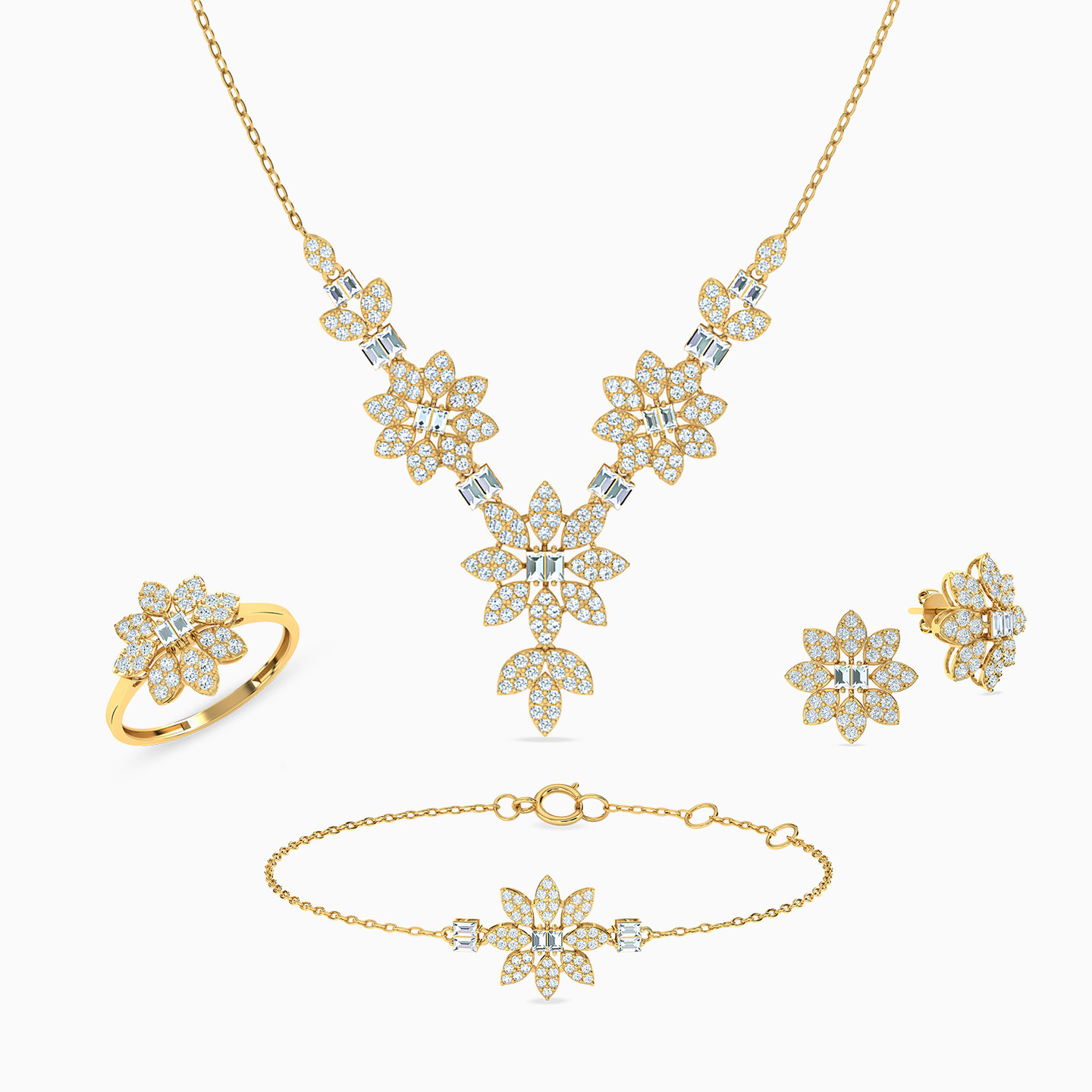 Flower Cubic Zirconia Full Set in 18K Gold (4 Pieces)