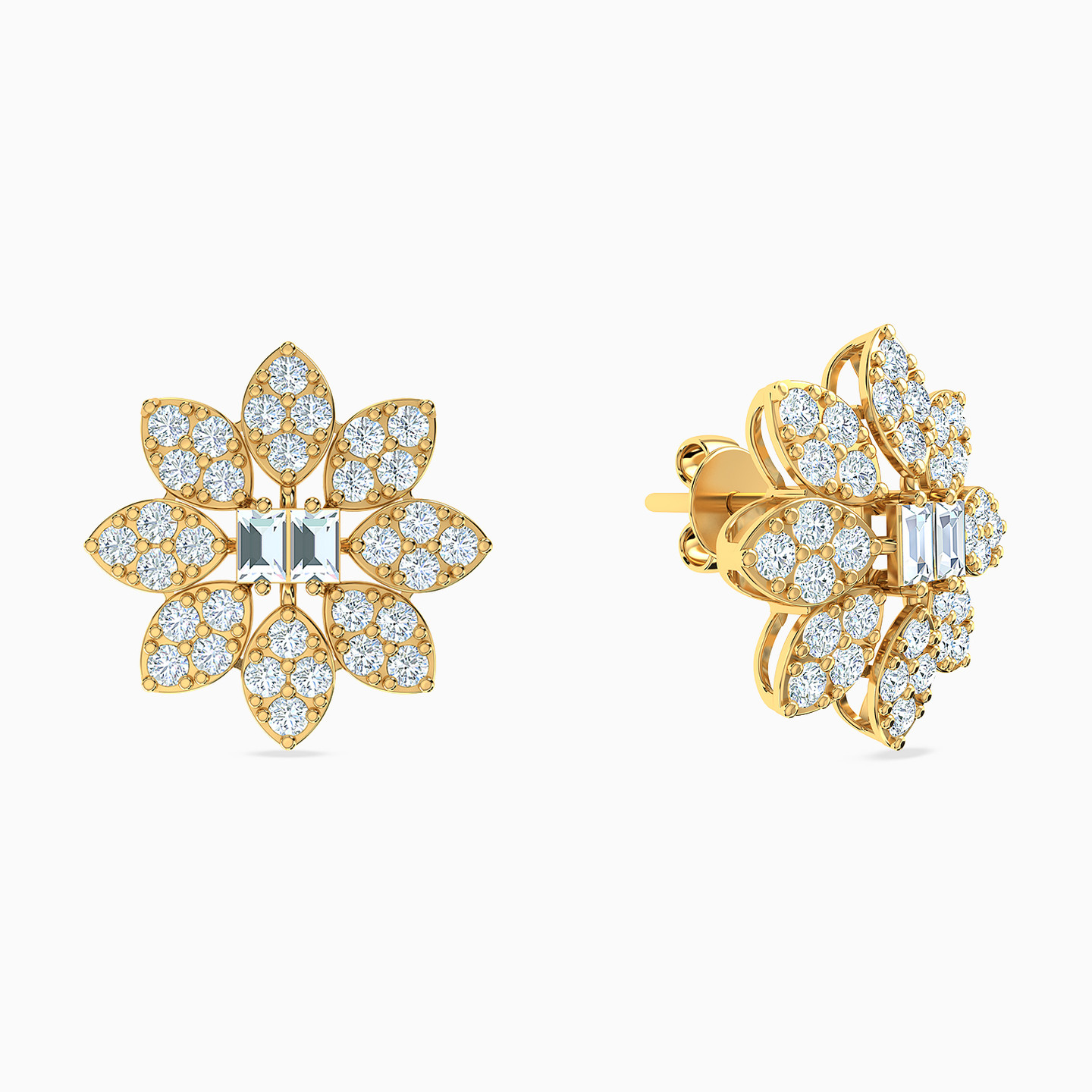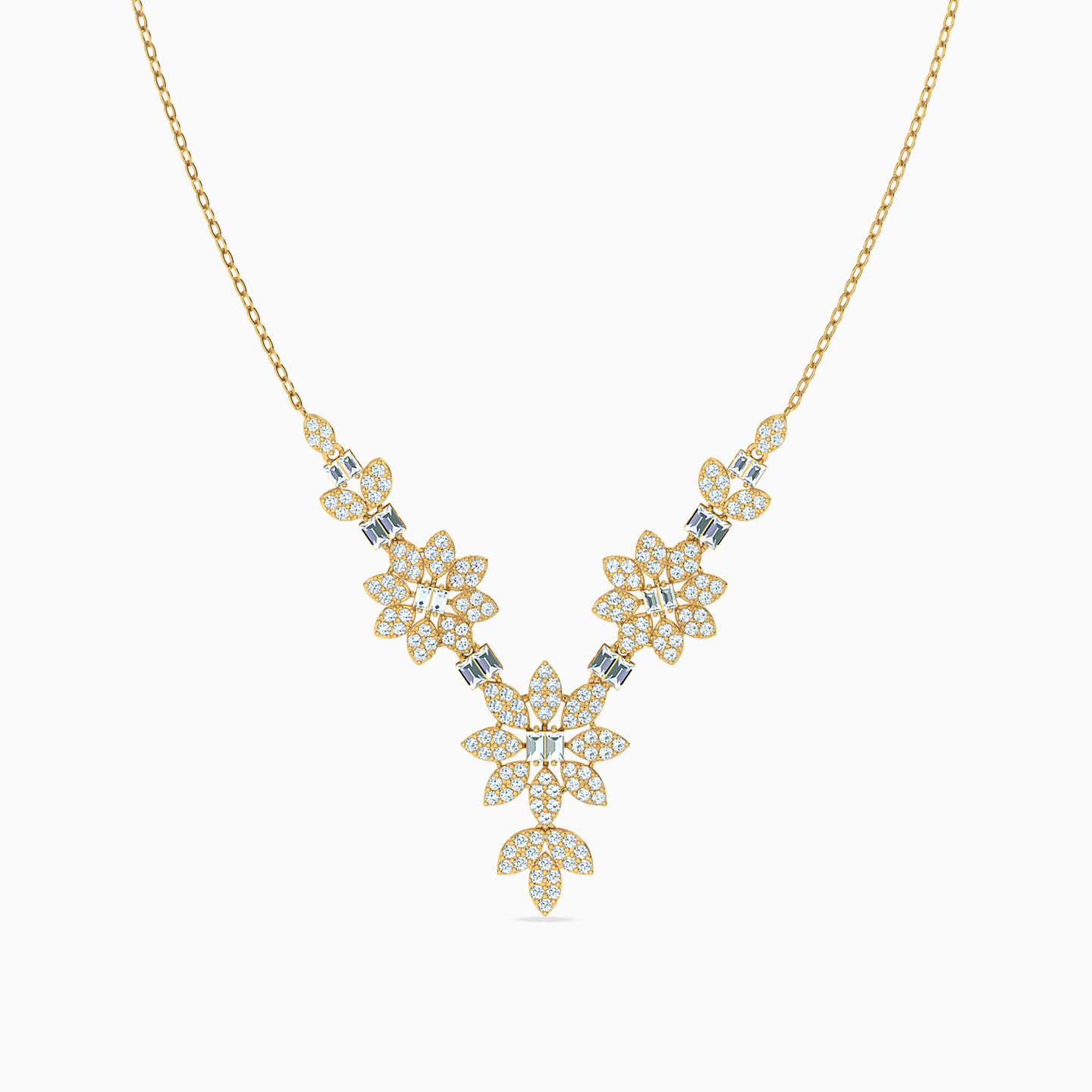 Let your femininity take center stage with this elegant set from L'azurde Gold. Featuring flower motifs studded with zirconia, this set comes with a decked necklace, a pair of ear studs, a petite bracelet and a ring. Ideal to spruce up any daytime or evening occasion wear, this set will pair up beautifully with a long gown or lightly embroidered dress.