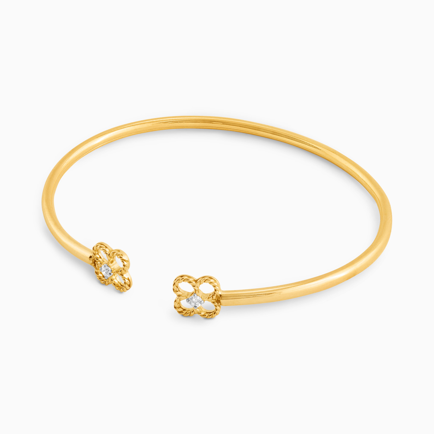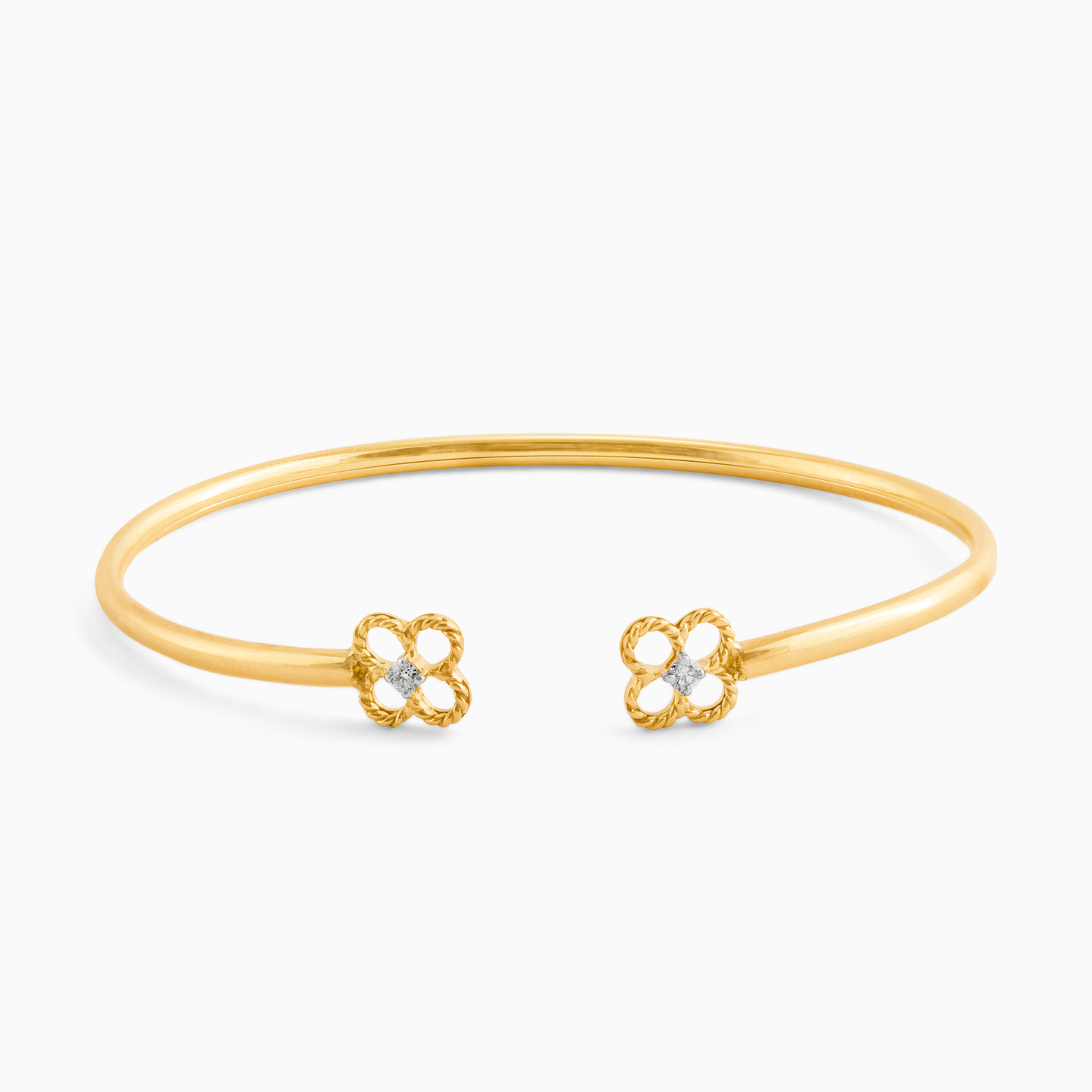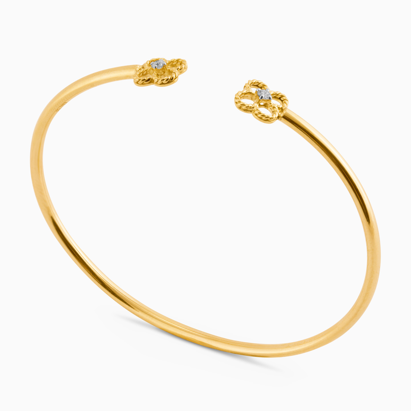 Add subtle charm and feminine beauty to any look by wearing this eye-catching cuff bracelet from L'azurde Diamonds. Meticulously crafted in 18-karat yellow gold, this lovely cuff bracelet features two twisted floral motifs with 0.09-carat brilliant cut diamonds at their centers. Reach for this chic cuff bracelet when you want a look that's effortlessly elegant.