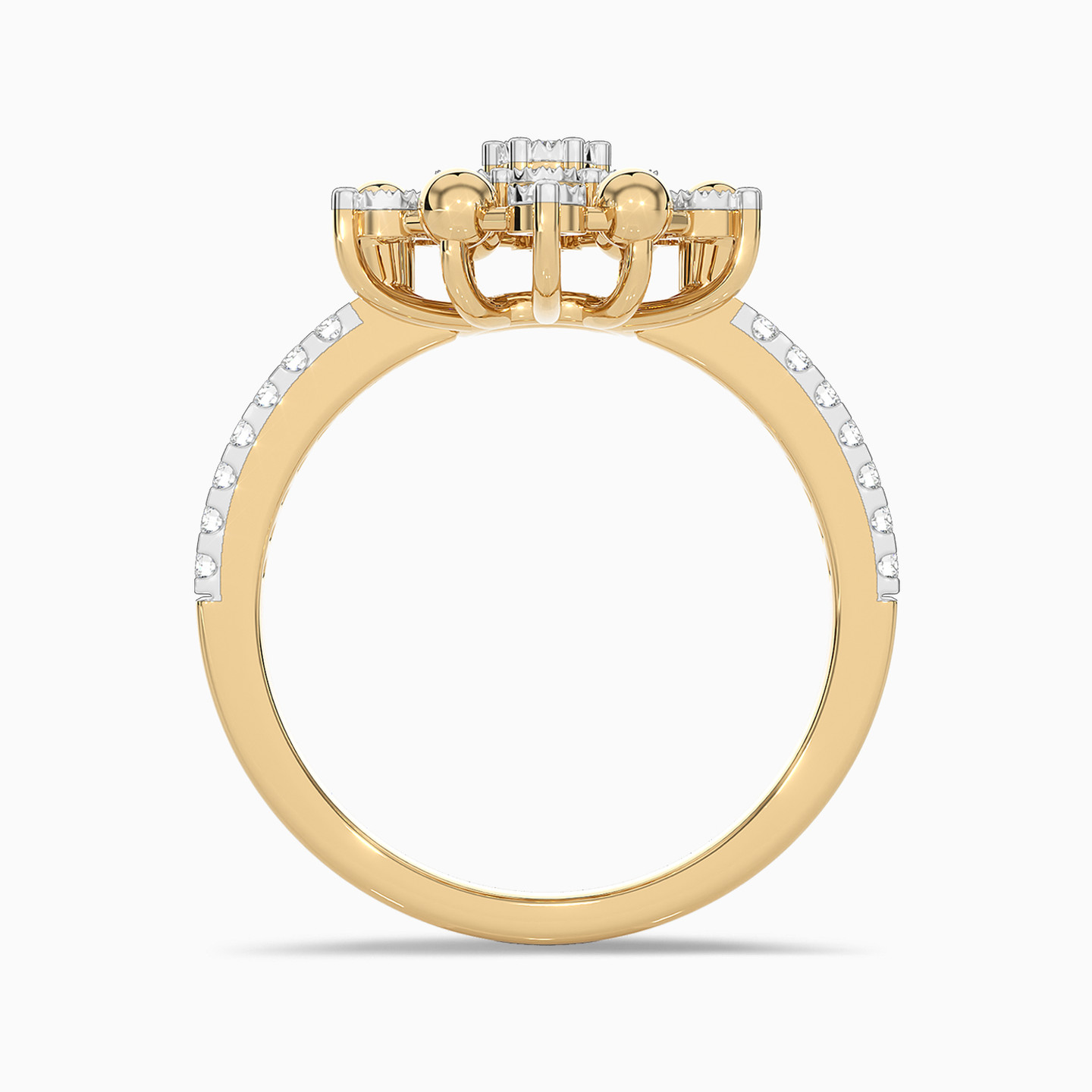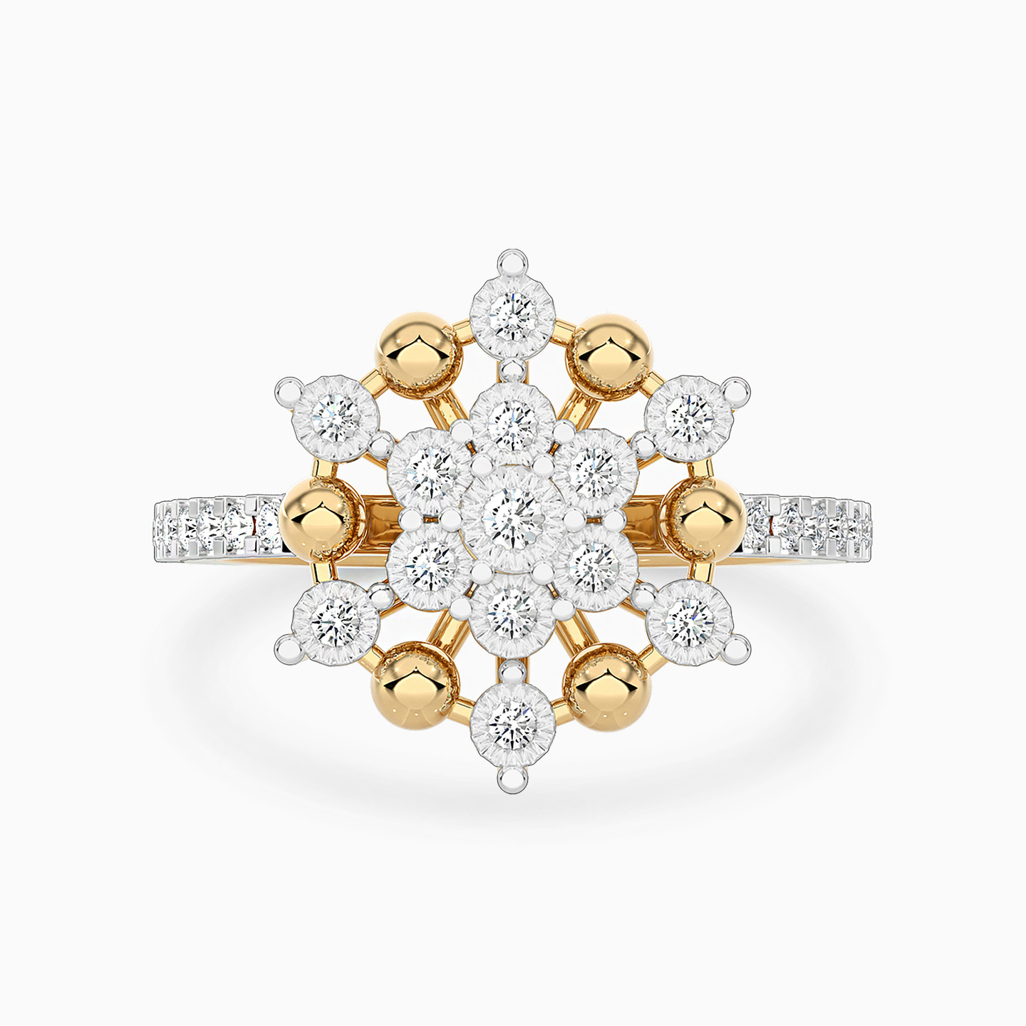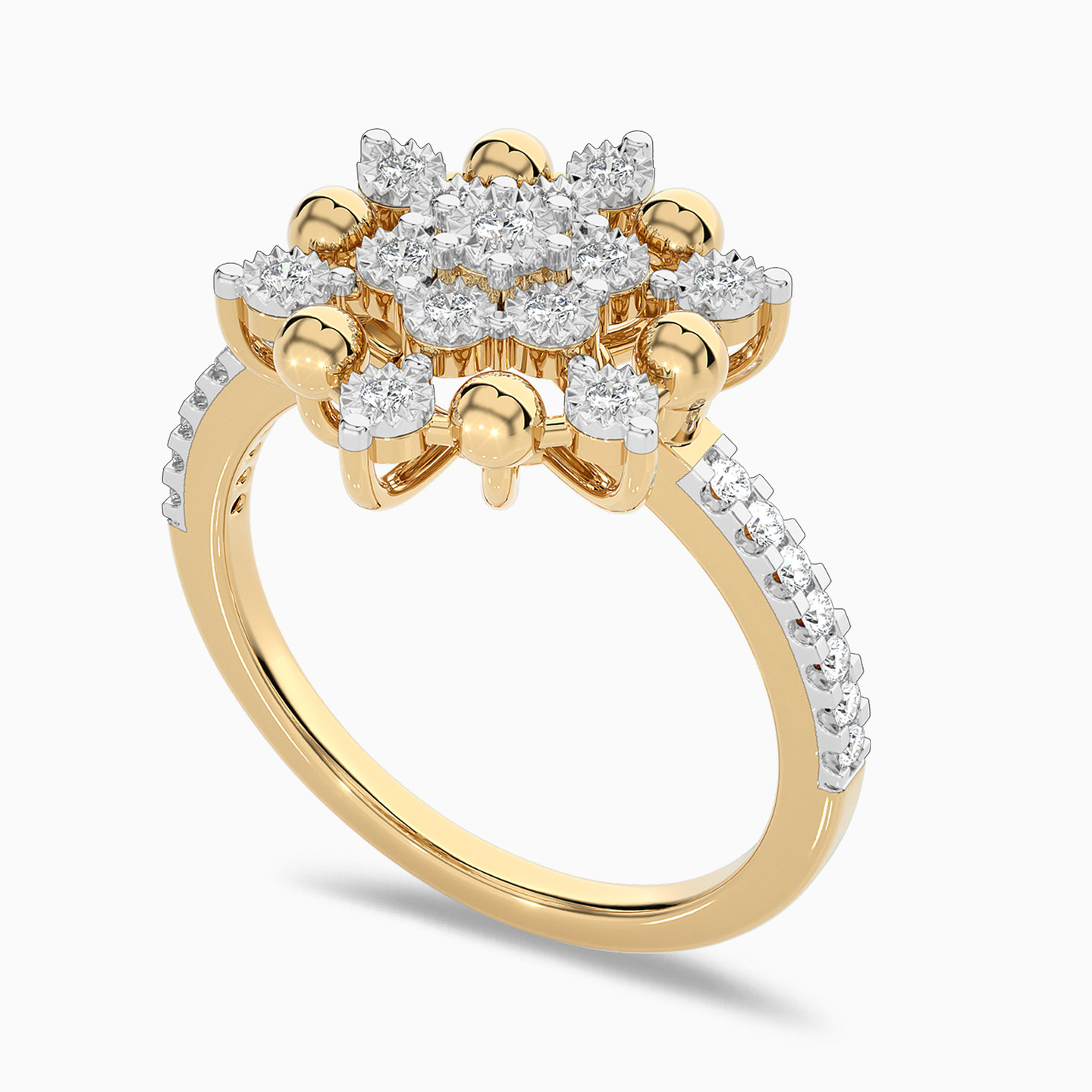 You'll bloom with style when wearing this gorgeous ring from L'azurde Diamonds. Inspired by nature, this head-turning ring looks like a magnificent flower opening to reveal 0.21-carat brilliant cut diamonds with eye-catching 18-karat yellow gold beads, diamond accents and a diamond lined shank. What a perfect choice to add a luxurious touch to evening and special occasion wear.