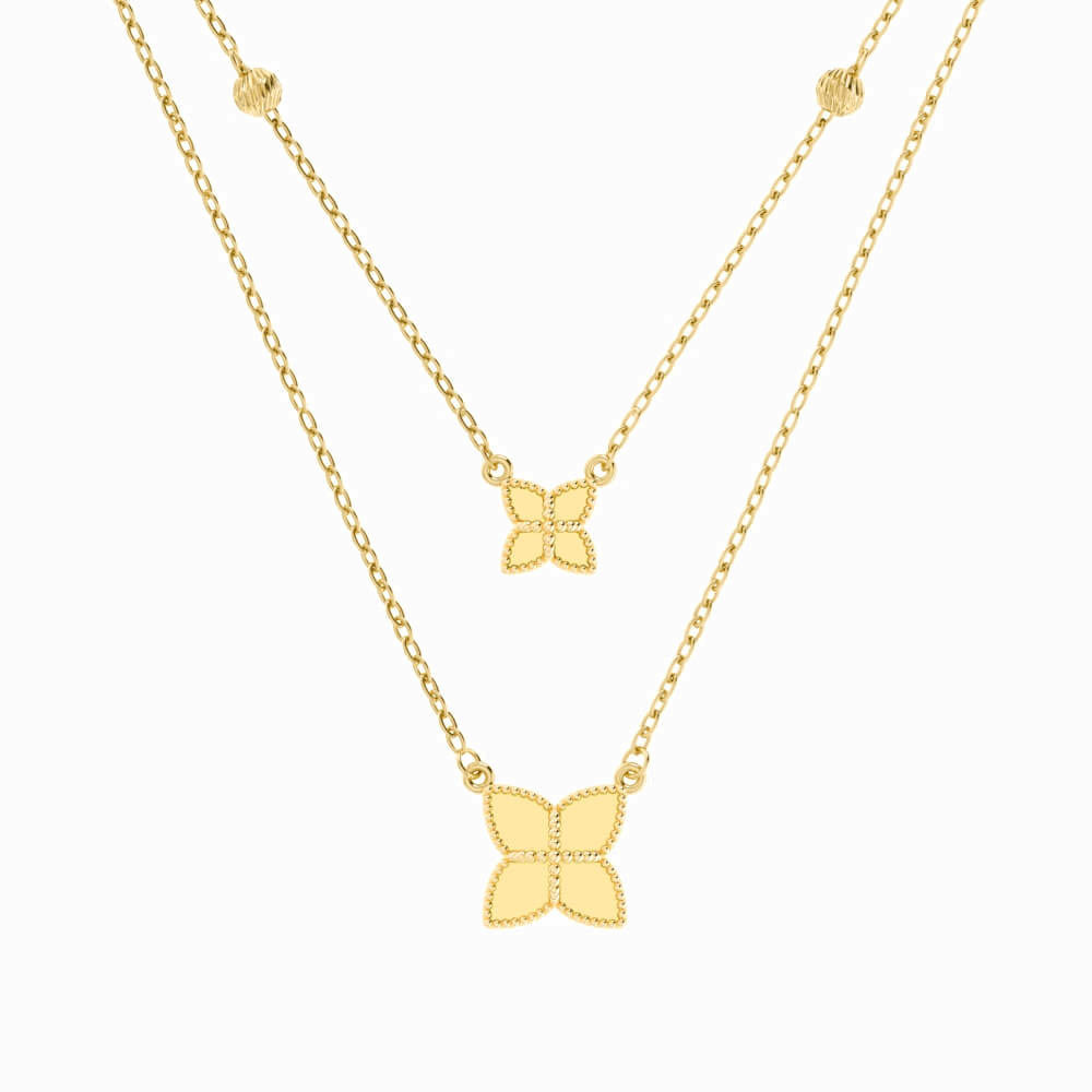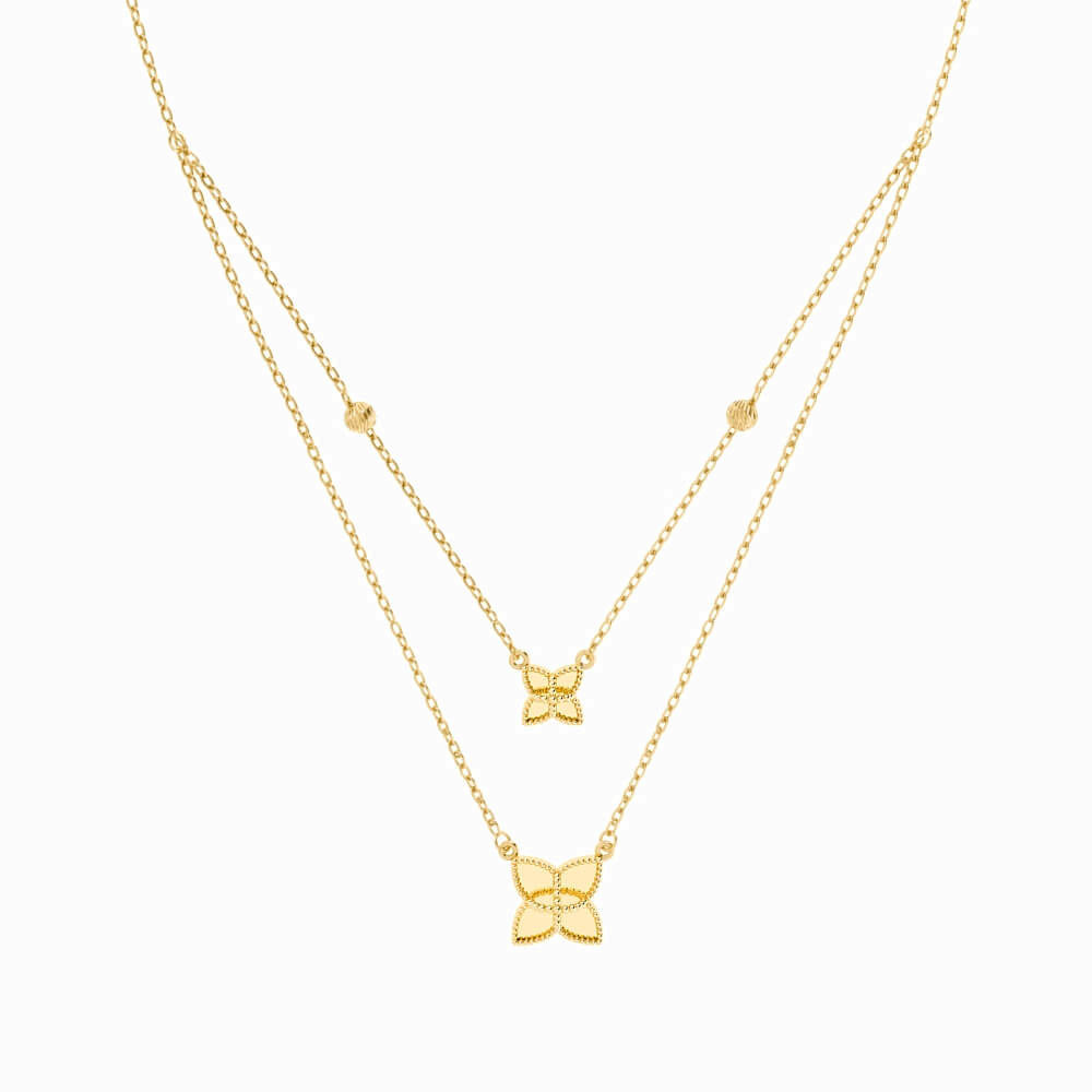 Flower Layered Necklace in 18K Gold