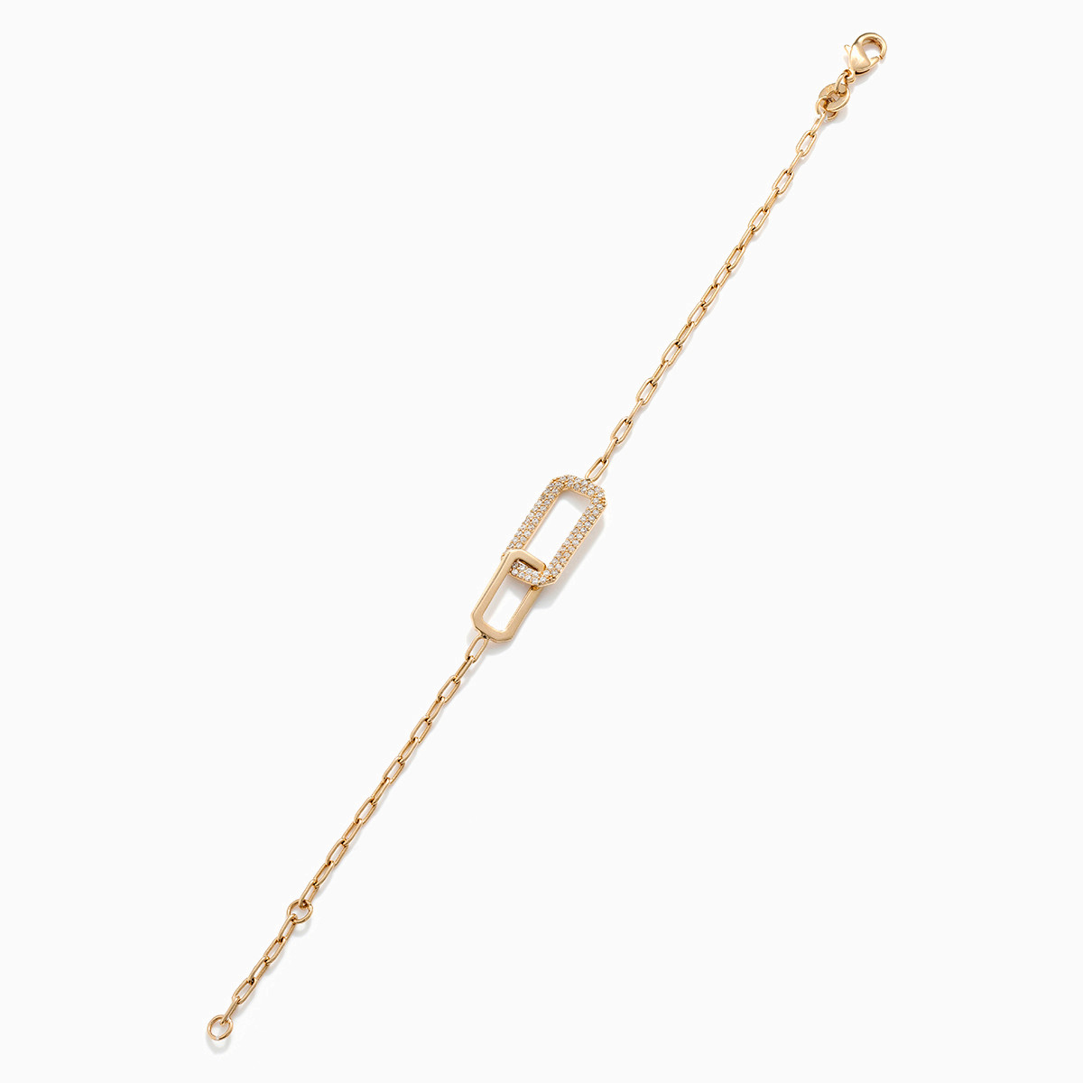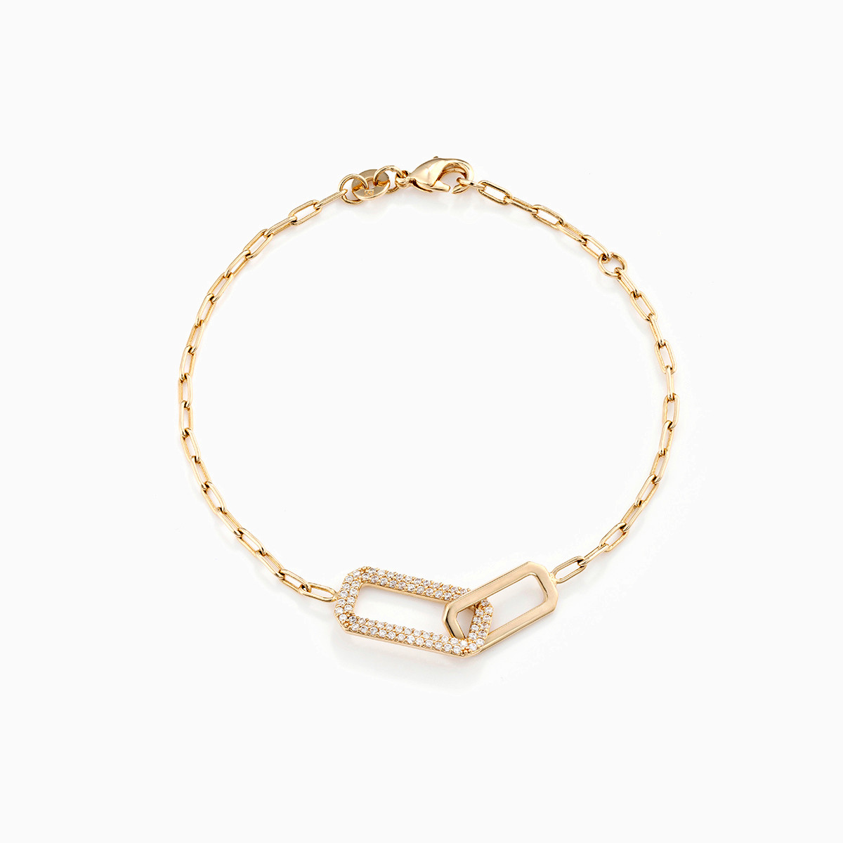 Crafted with clean lines, this bracelet from Waves will give your everyday style a sophisticated look. It is crafted with 18-karat yellow gold plating and features a pair of links dotted with cubic zirconia stones to the center. Absolutely stylish, we think it will make a confident addition to your outfit, whether you wear it solo or with matching pieces from our collection.