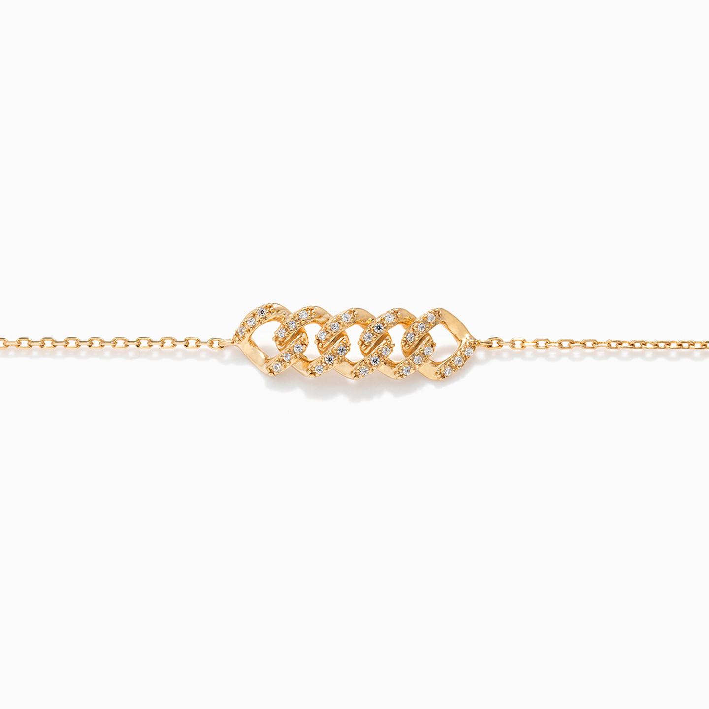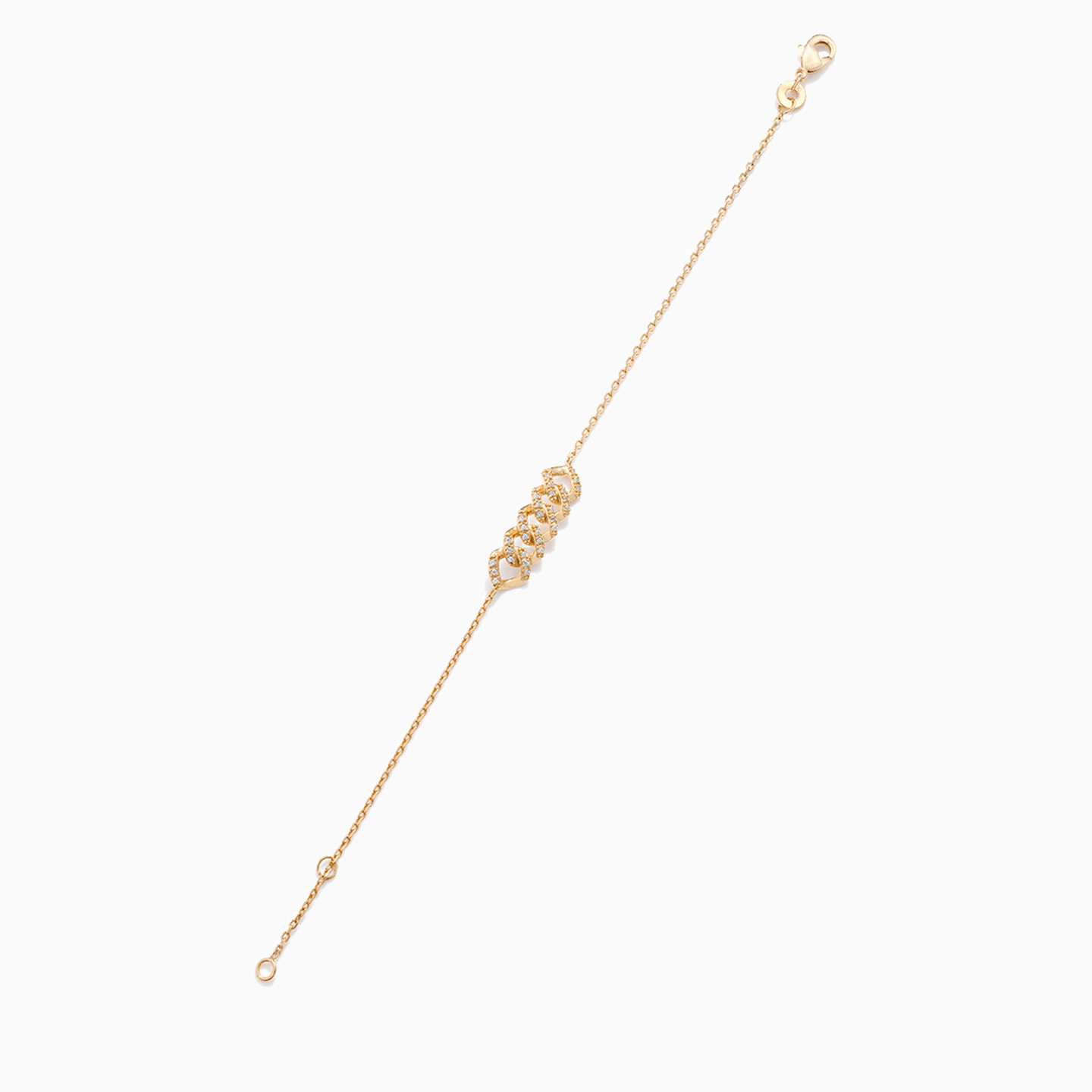 You cannot help but fall in love with the minimal shine of this bracelet from Waves. A perfect choice to take you from day to evening with utter elegance, it is crafted with a cluster of interconnected links lightly studded with cubic zirconia stones and strung on an 18-karat yellow gold-plated chain. This piece can be paired with a matching necklace from our collection for everyday wear.