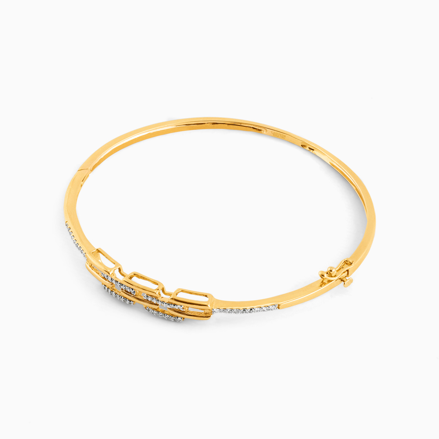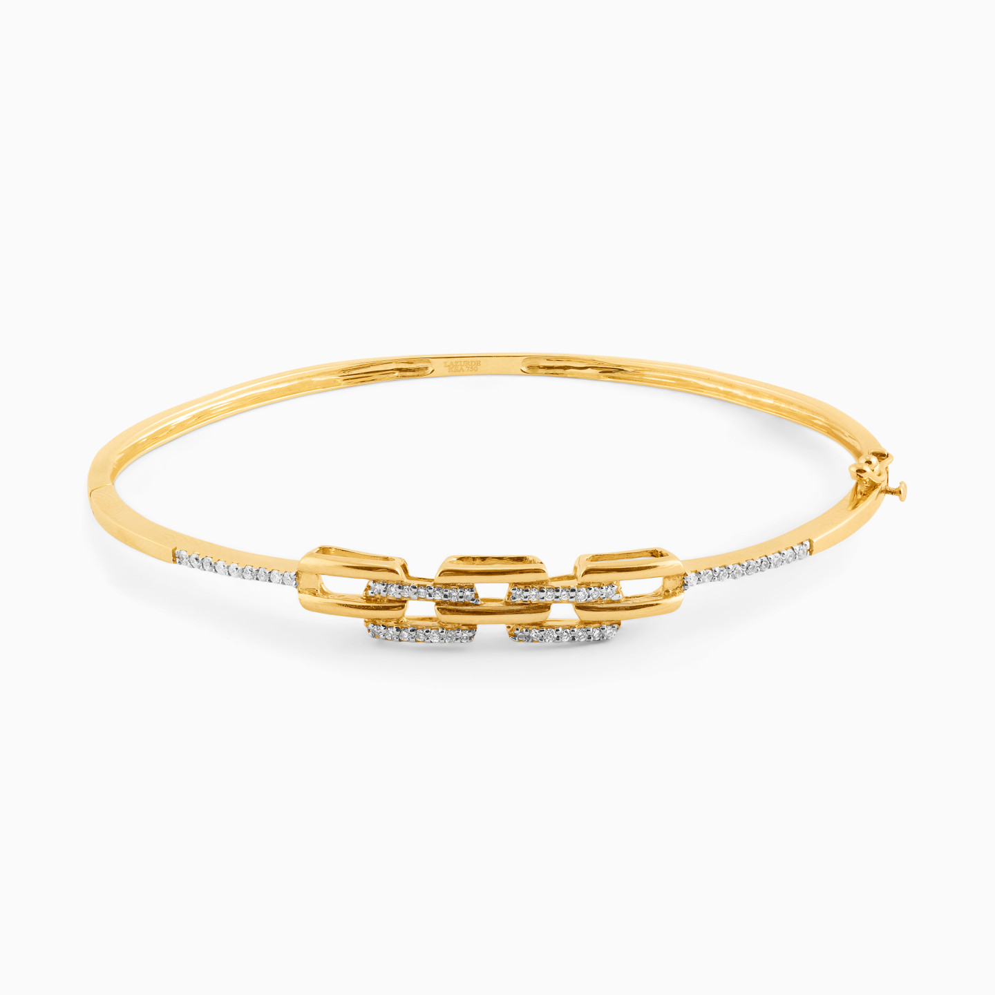 Elevate all your favorite looks with this exquisite 18-karat yellow gold bangle bracelet from L'azurde Diamonds. Beautifully crafted with alternating solid gold and diamond-covered links, this gorgeous bracelet features 0.22-carat brilliant cut diamonds that offer eye-catching radiance. This versatile bangle bracelet shines on its own and also has layering potential.