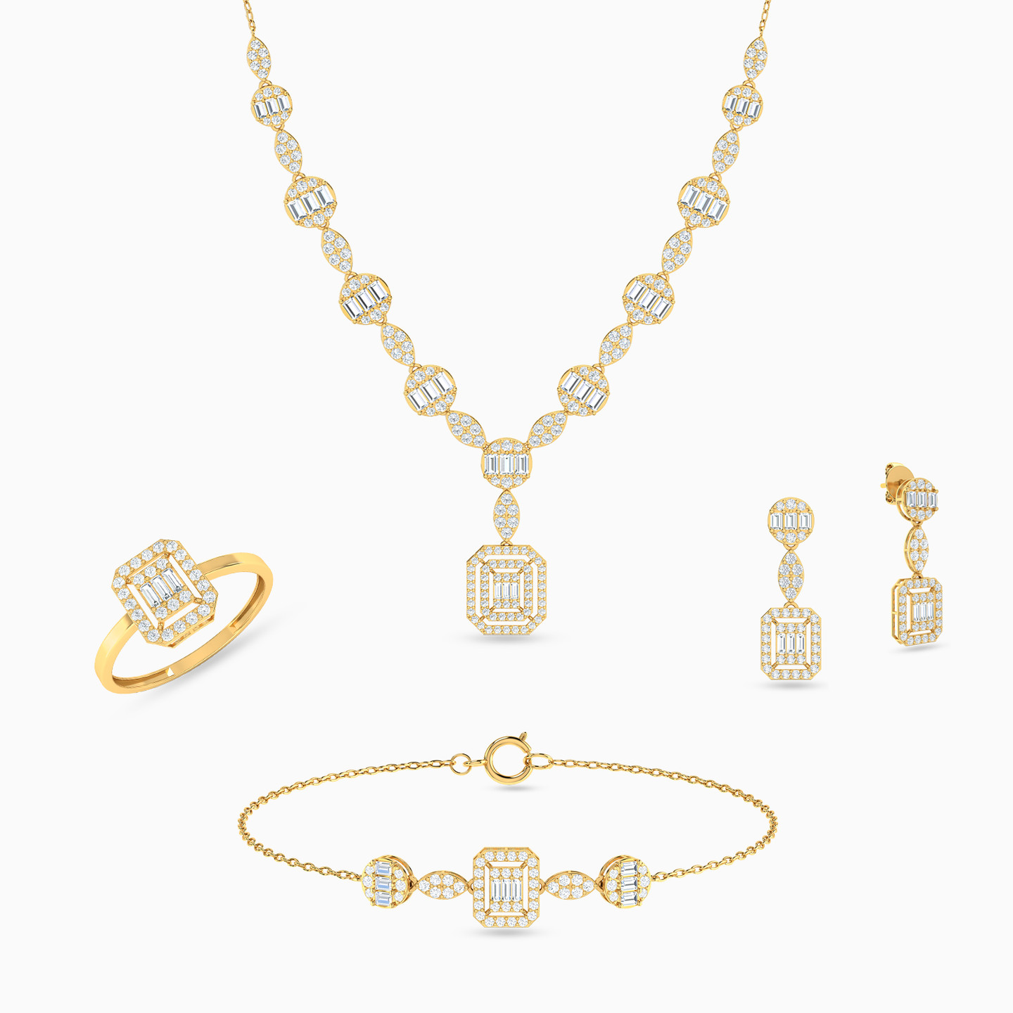 Octagon Cubic Zirconia Full Set in 18K Gold (4 Pieces)