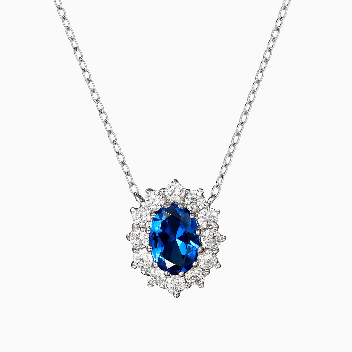 Oval Blue Stone Sterling Silver Necklace