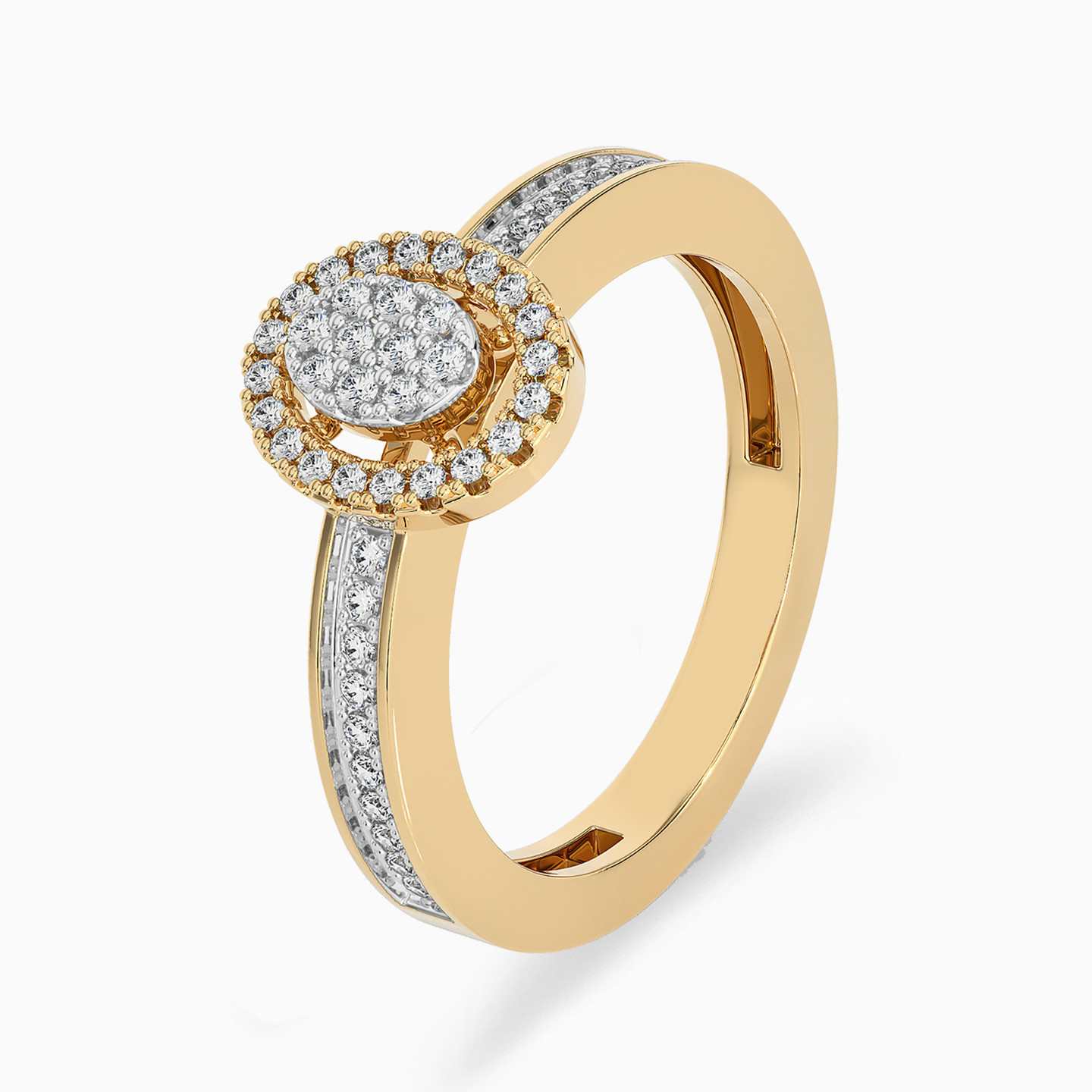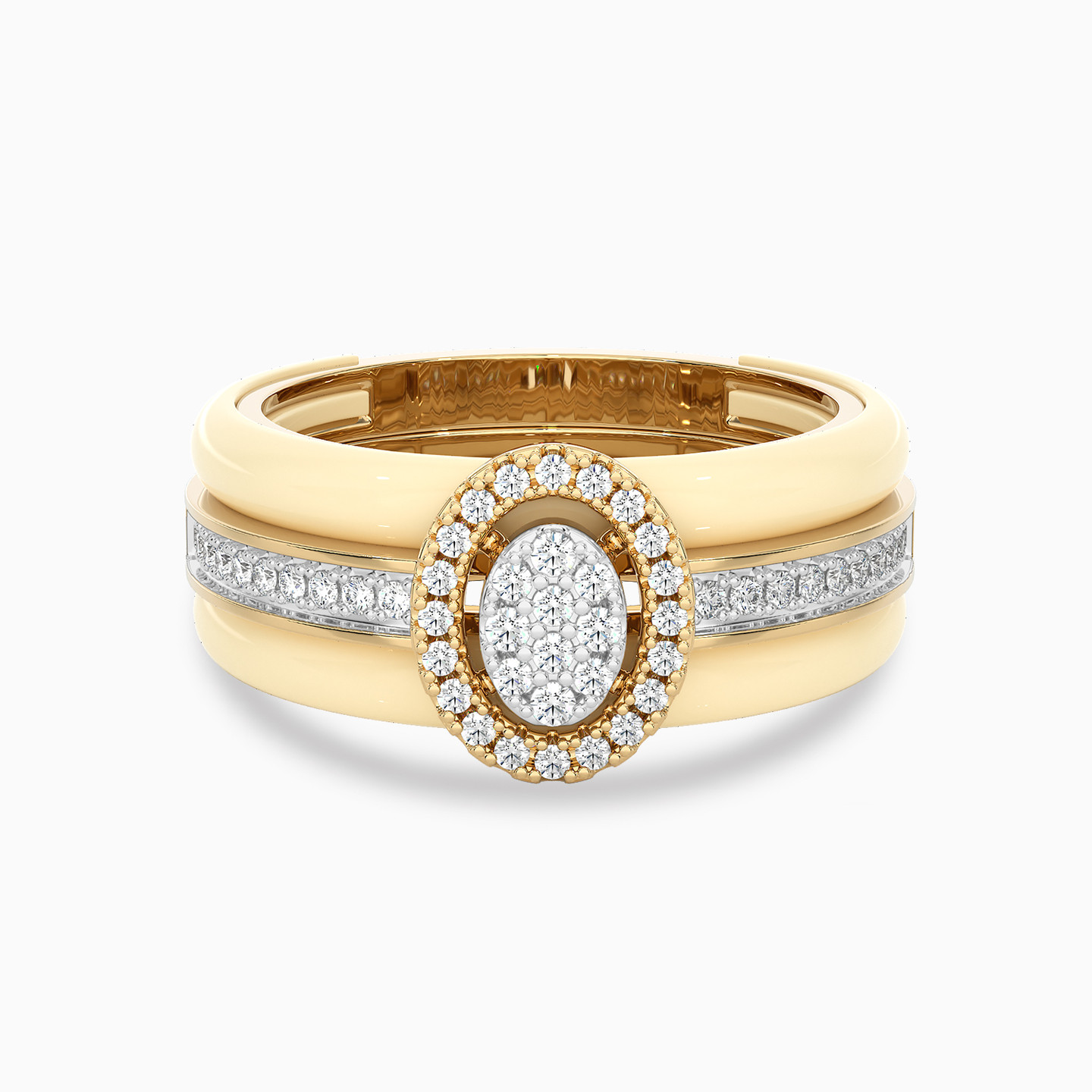 Add two beautiful rings from L'azurde Diamonds to your jewelry collection that can be worn together or individually and get twice the style impact. Beautifully crafted in 18-karat yellow gold, the diamond ring in this set dazzles with 0.23-carats of brilliant cut diamonds in an oval halo-framed center cluster with diamonds all along the band. The second abstract-style ring is crafted of a milky-yellow double enamel band that fits seamlessly around its diamond counterpart. As a set or alone, this twin ring set elevates any look.