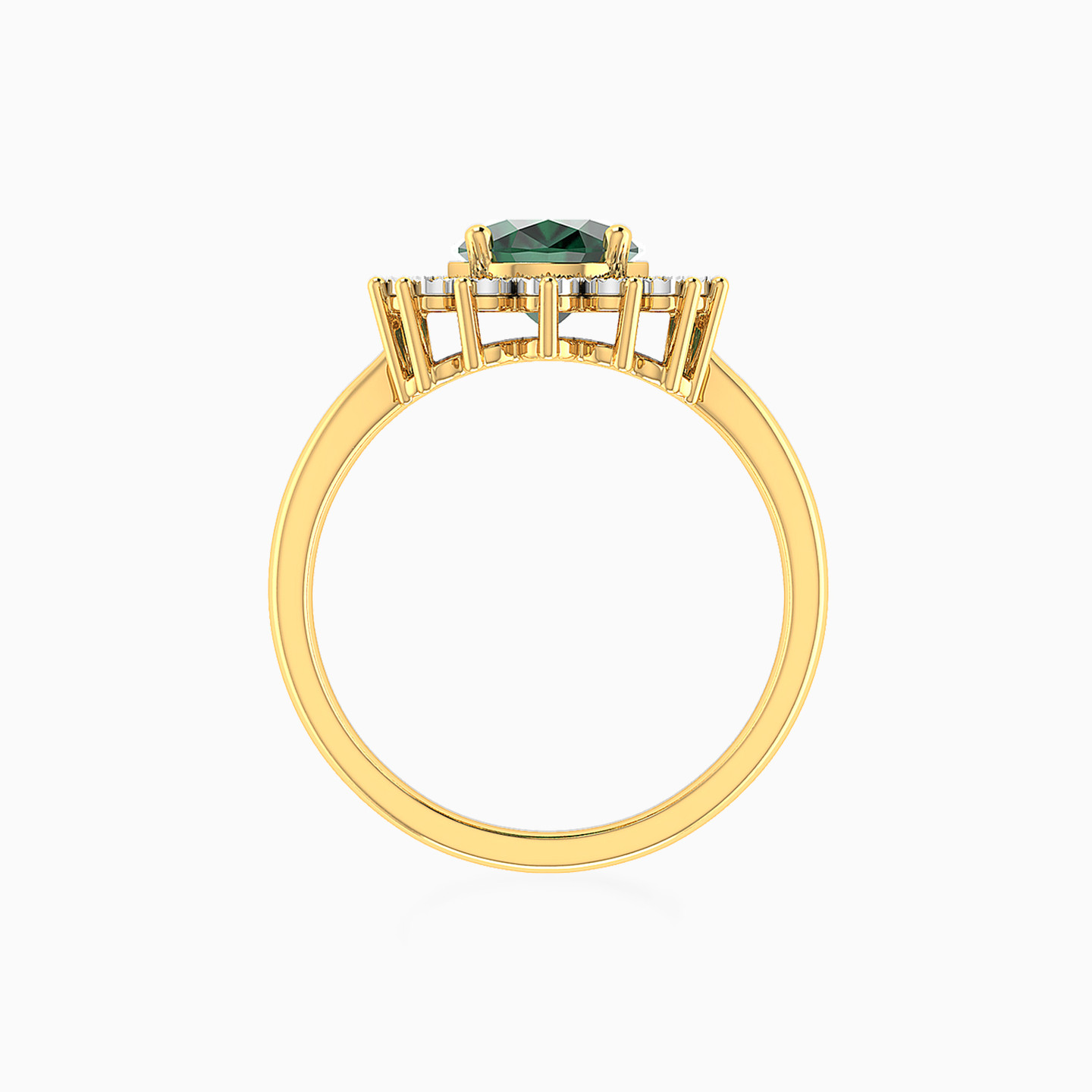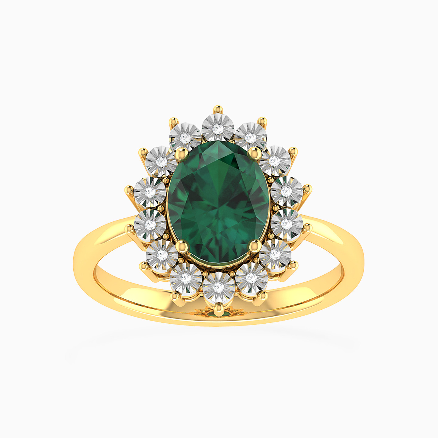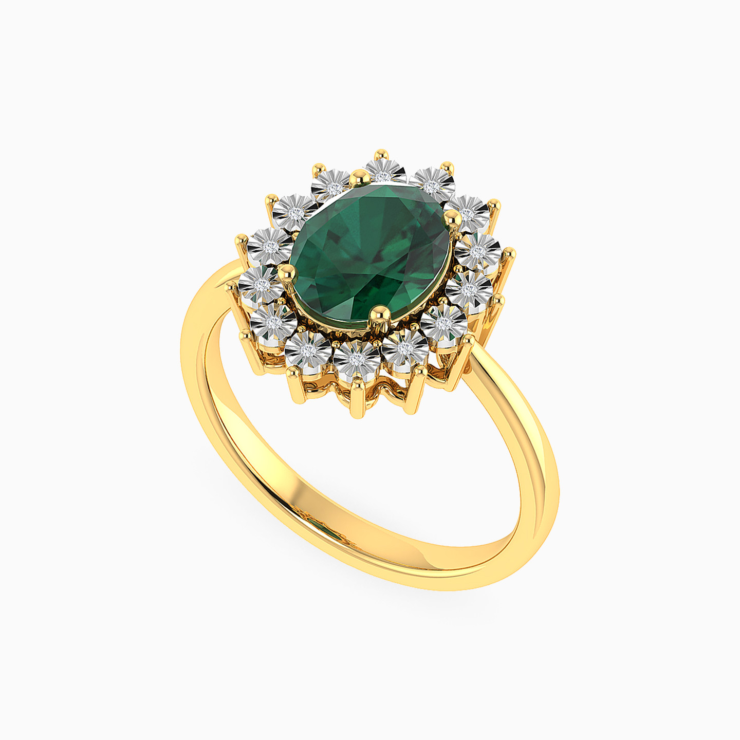 Oval Diamond & Green Stones Ring in 18K Gold
