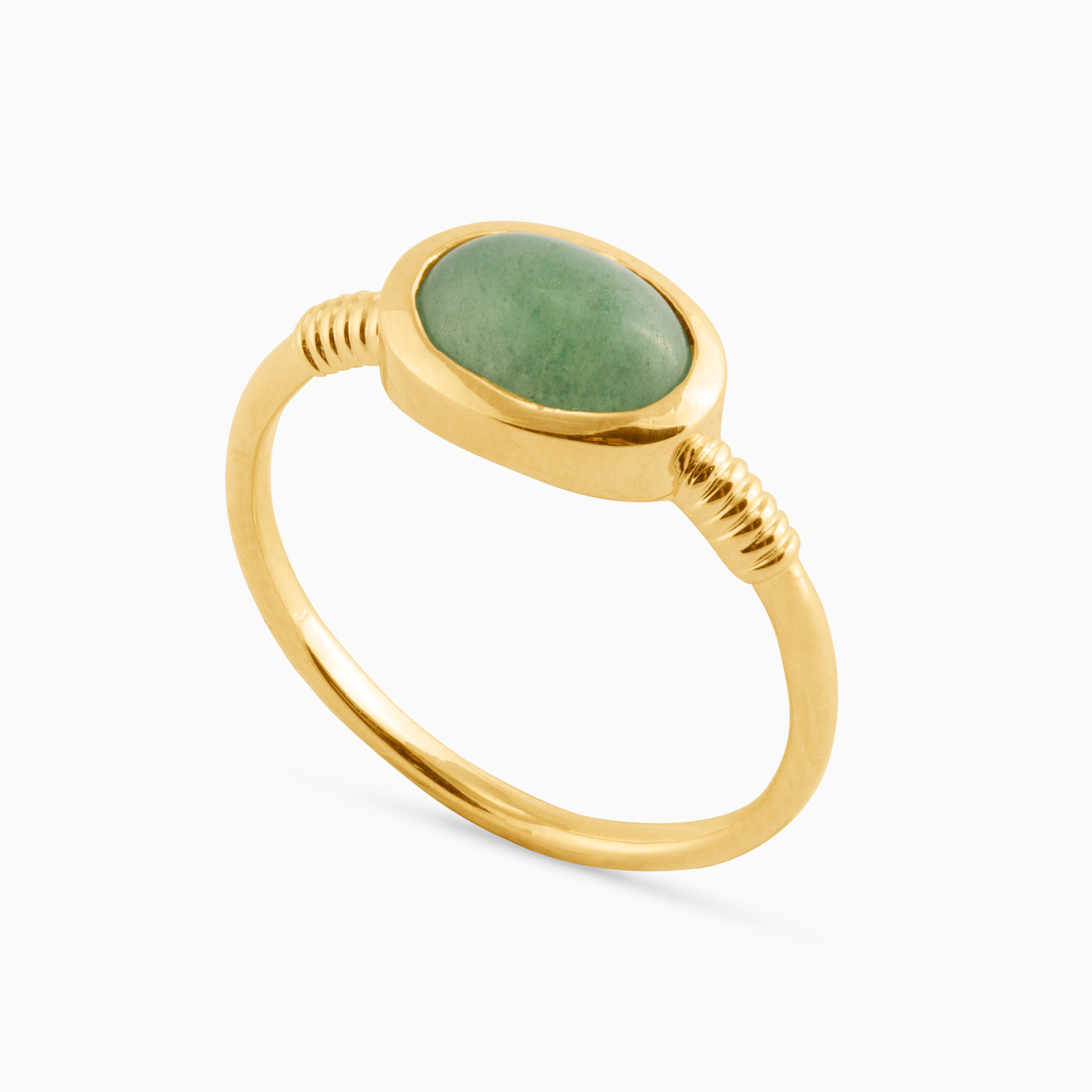 Your hands will do the talking all evening with this timeless piece from Waves. Finished with 18-karat yellow gold plating, this statement ring is adorned with a green aventurine quartz to the center that sits on a slim band. Its soothing hue will make it a perfect choice of wear from day to evening.