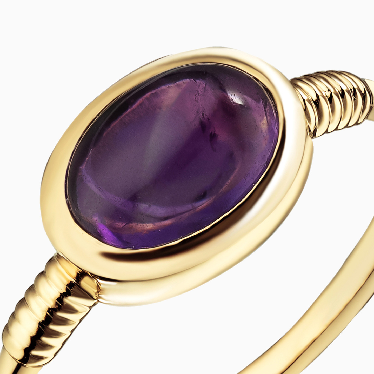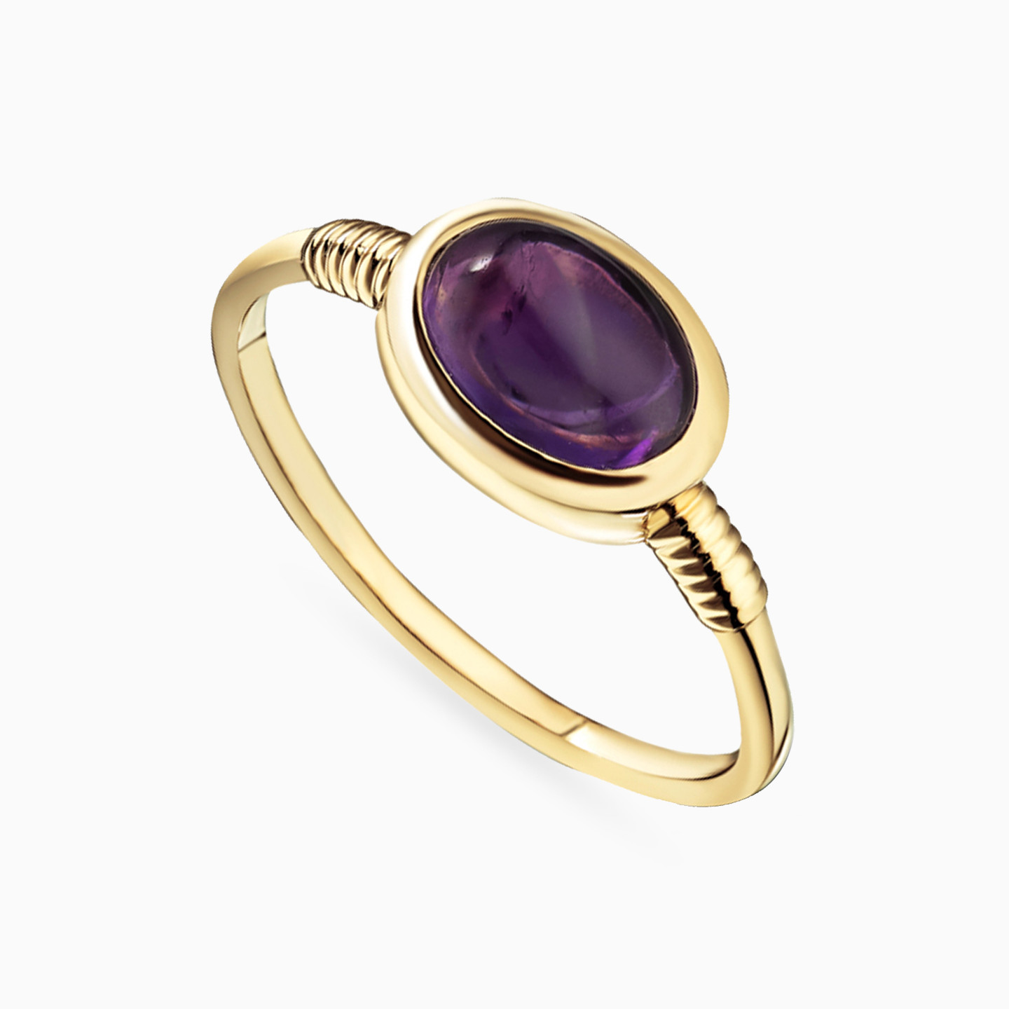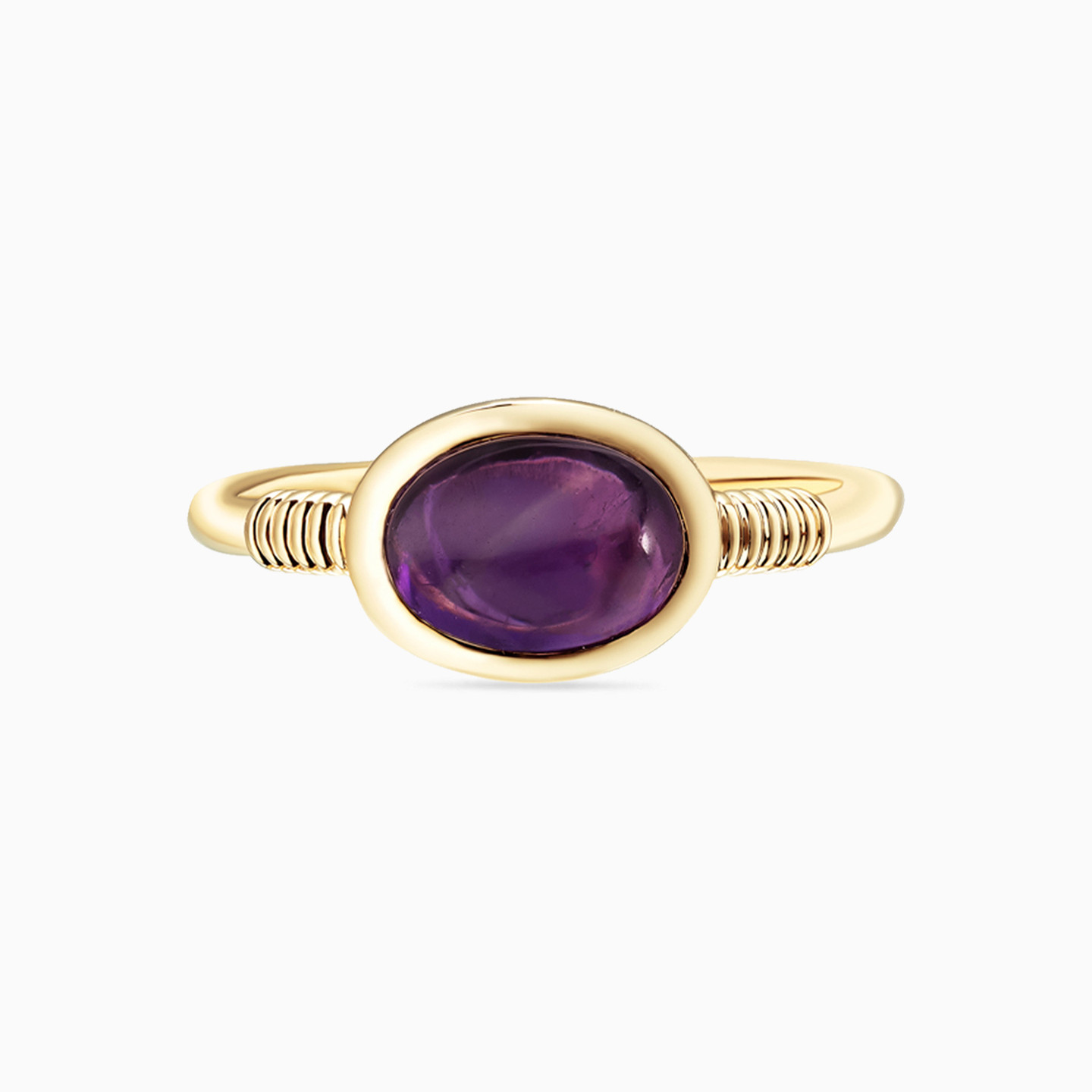 Let your charismatic personality elevate your style quotient to a new level with this expressive ring from Waves. The 18-karat yellow gold-plated slim band holds a deep violet amethyst quartz stone to the center that's totally unmissable. This piece will work effortlessly worn solo or with matching pieces from our collection.