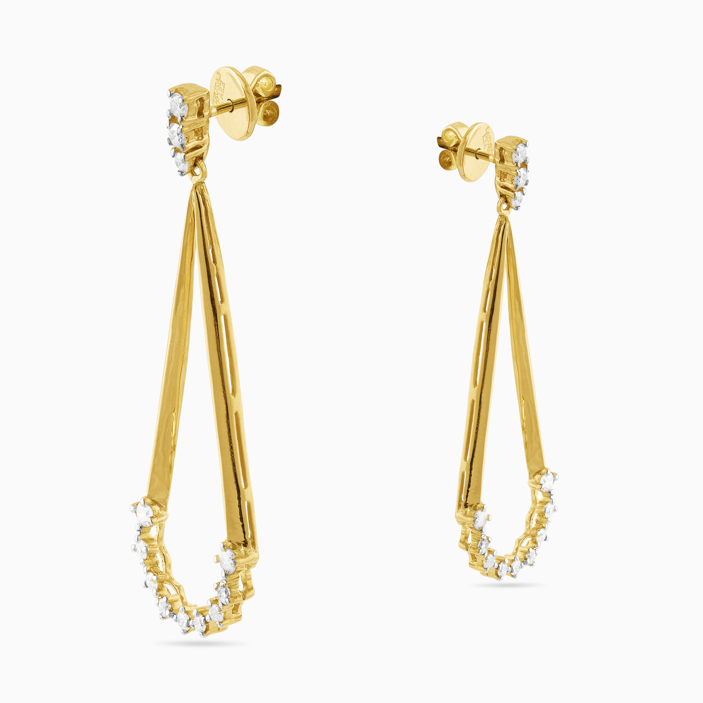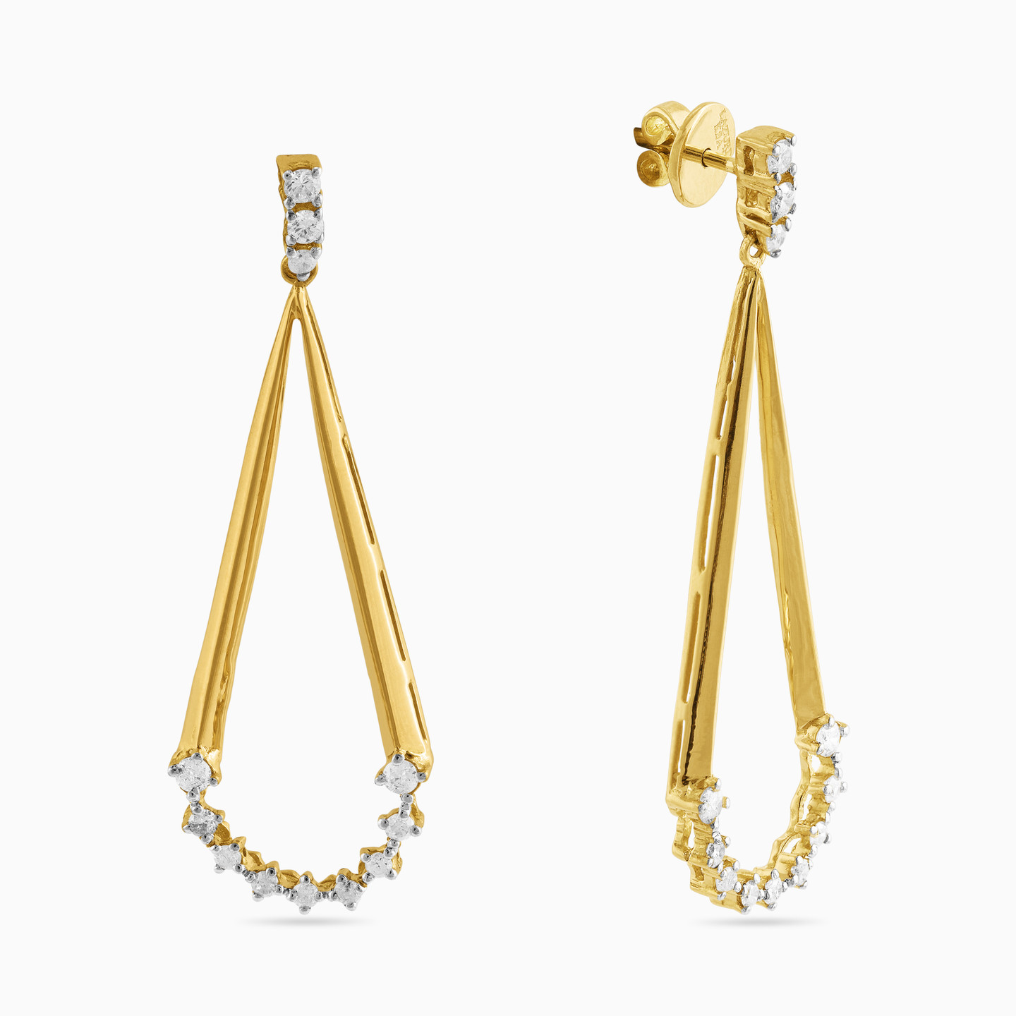 You’ll always have their undivided attention when you enter a room wearing these stunning drop earrings from L'azurde Diamonds. Elongated 18-karat yellow gold triangles with a rounded bottom dazzle with eye-catching 0.47-carat brilliant cut diamonds that are sure to get you noticed. Pair these earrings with a simple diamond pendant as the finishing touches to formal wear.