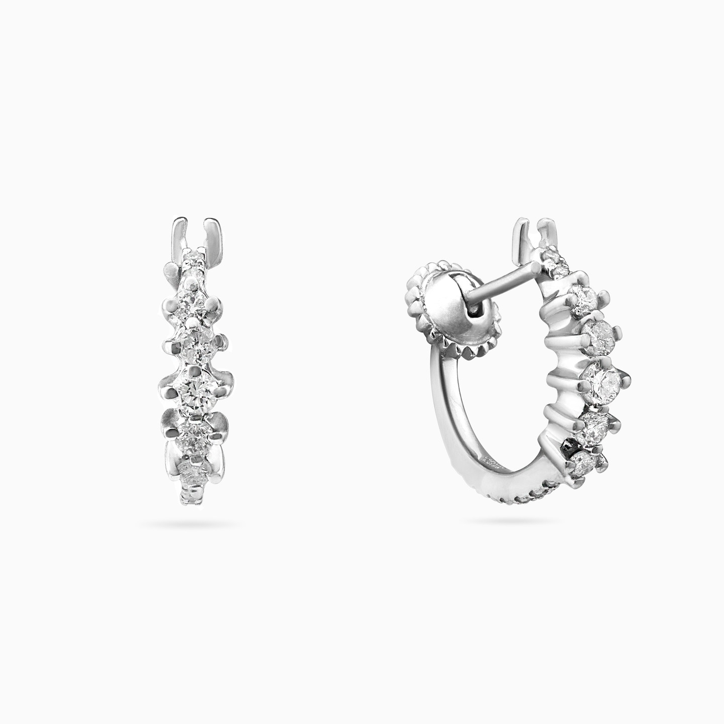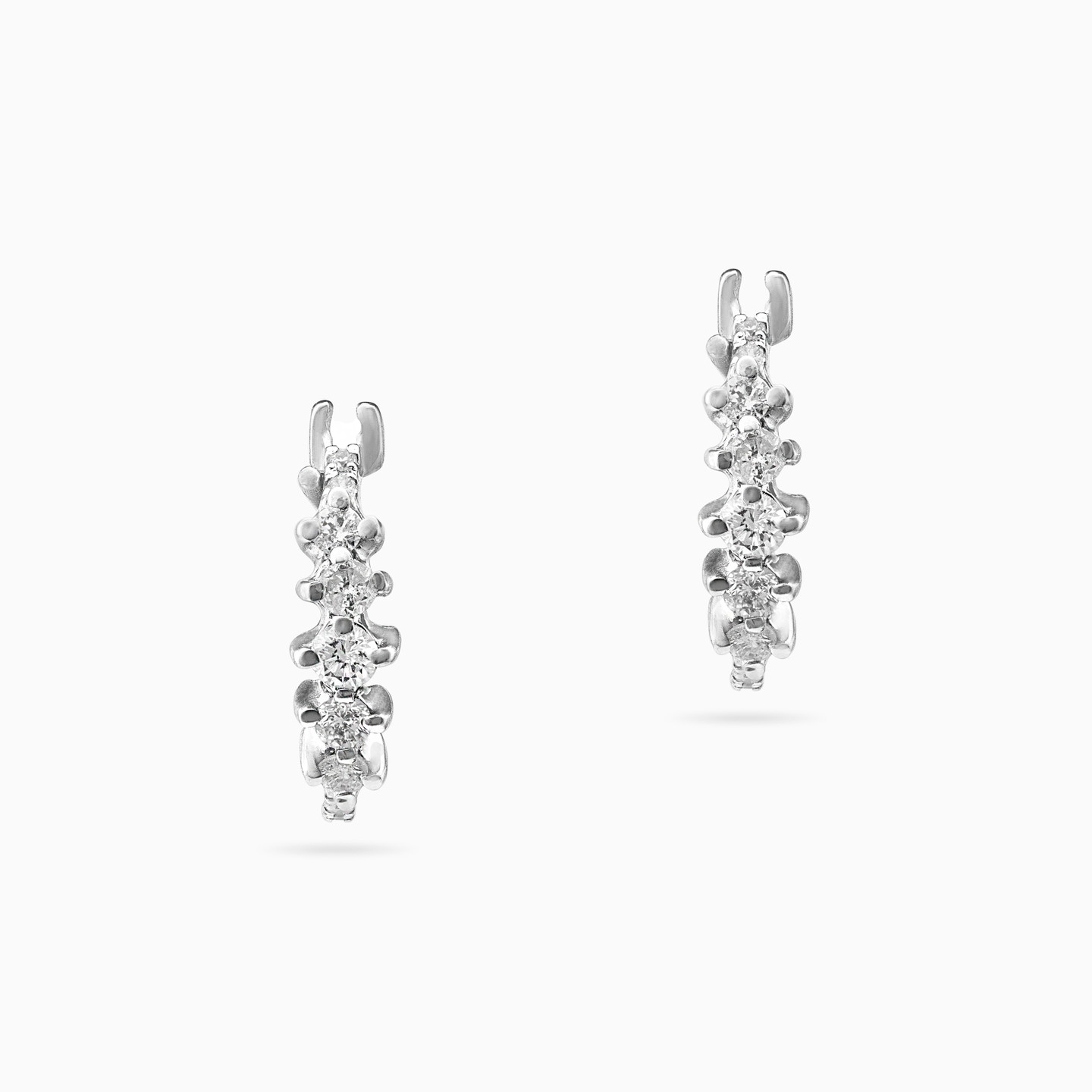 Bling up your workday or day-out ensemble with this sparkling pair of hoops from L'azurde Diamonds. Crafted from the finest 18-karat white gold, these small hoops come studded with five brilliant cut diamonds set beautifully on four big prongs and with a hoop latch backing that latches on to a circular beaded motif. The chic design and elegance of the diamonds make these hoops a trendsetter.