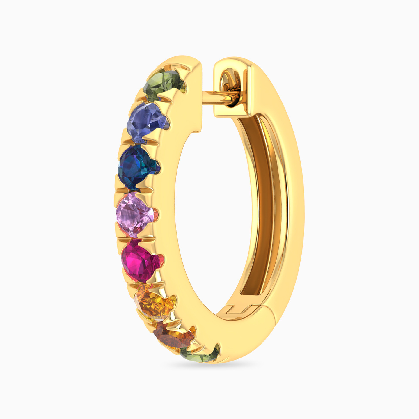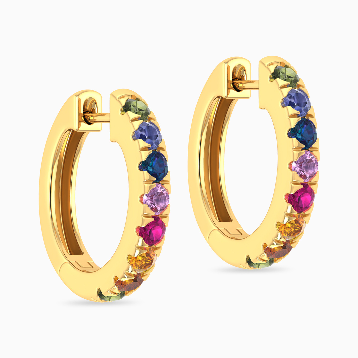 Your classic gold hoops but with a twist, or rather a pop of colors. These gorgeous hoops from L'azurde Diamonds are made of 18-karat yellow gold and come lined with the most dazzling 1.44-carat brilliant cut diamonds but in a rainbow of colors. The sparkle and the eye-catching colors of the diamonds make these hoops a complete game-changer. Style them with just about anything and get ready for those compliments.