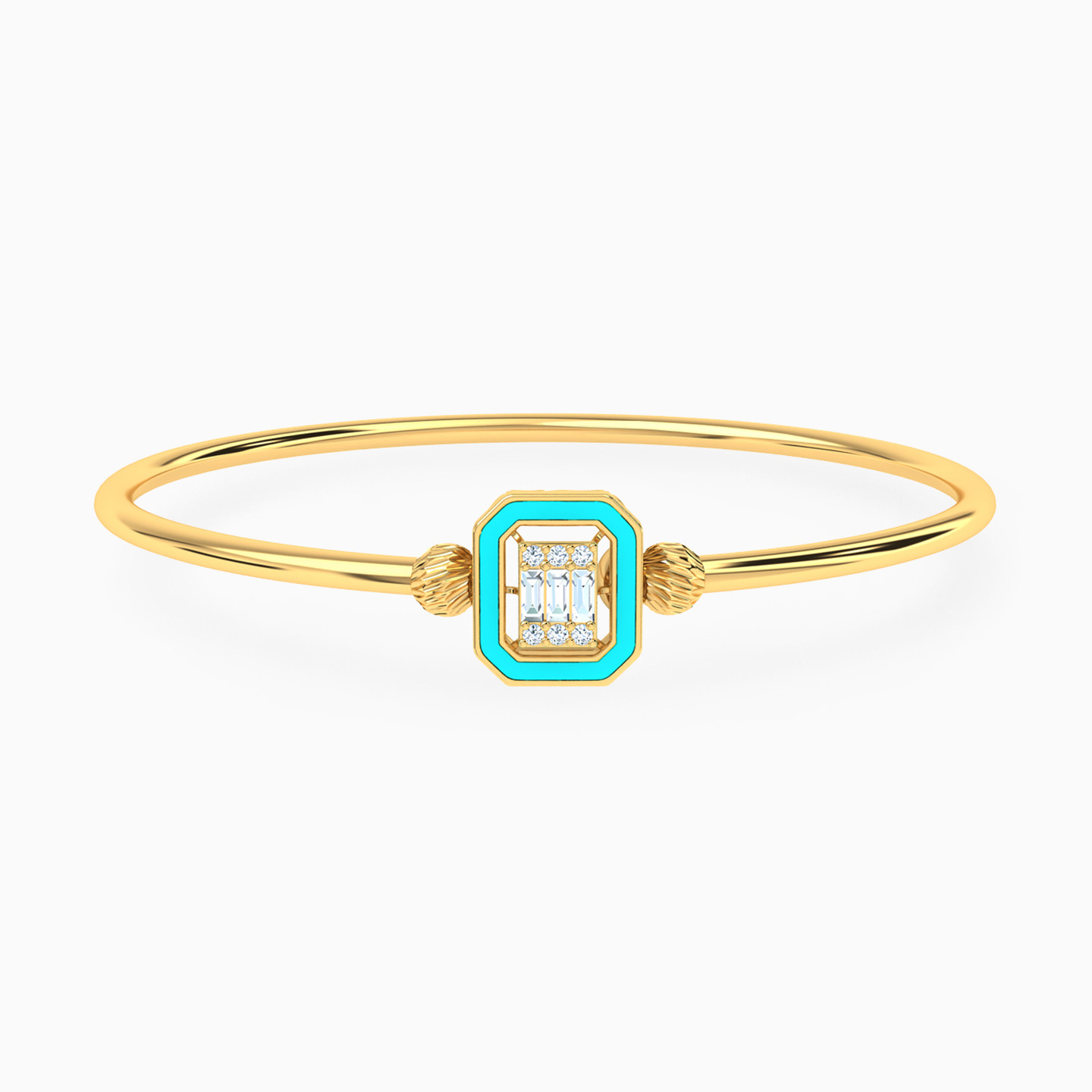 Square Colored Stones & Enamel Coated Bangle Bracelet in 18K Gold