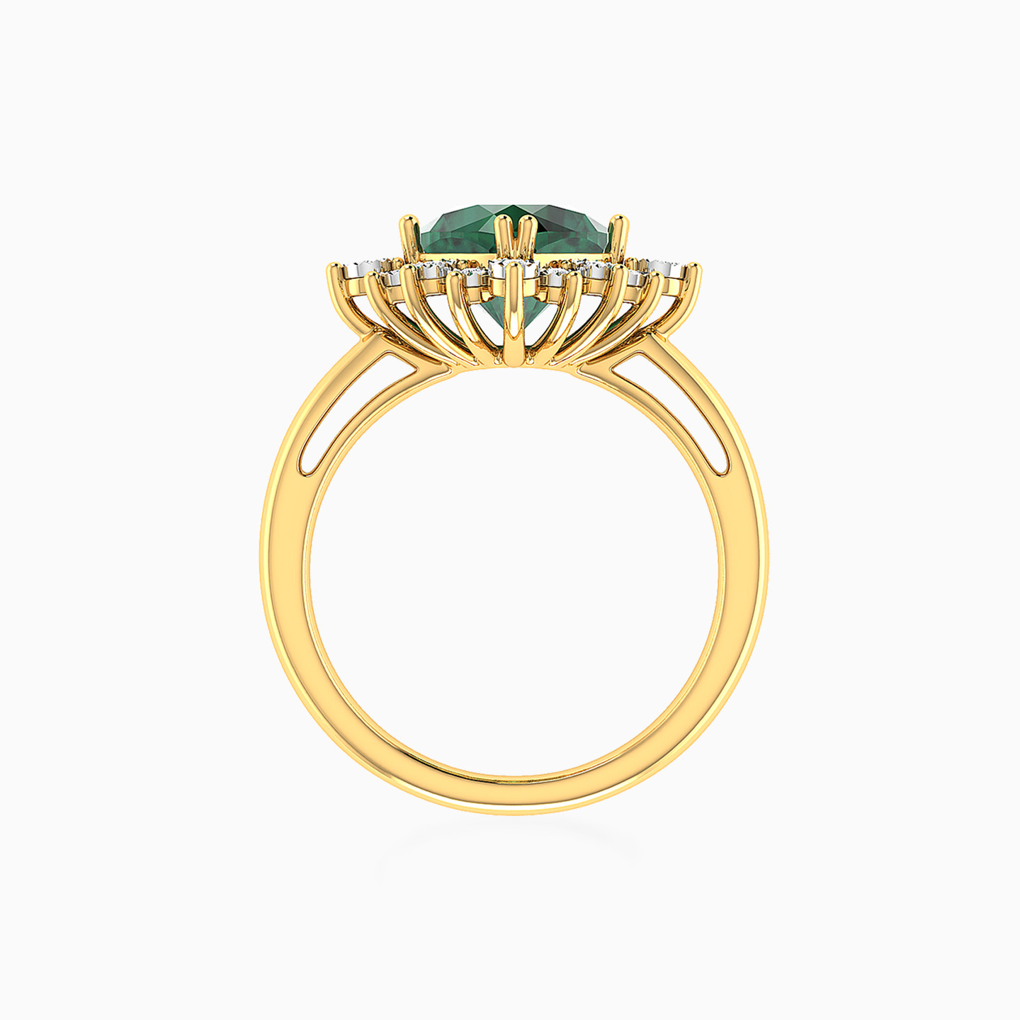 You're sure to feel like royalty with this gorgeous green masterpiece from L'azurde Diamonds on your finger. This stunning 18-karat yellow gold ring features 0.03-carats of brilliant cut diamonds that frame a striking square-shaped green stone at the center. Reach for this ring when you want to leave admirers awestruck.