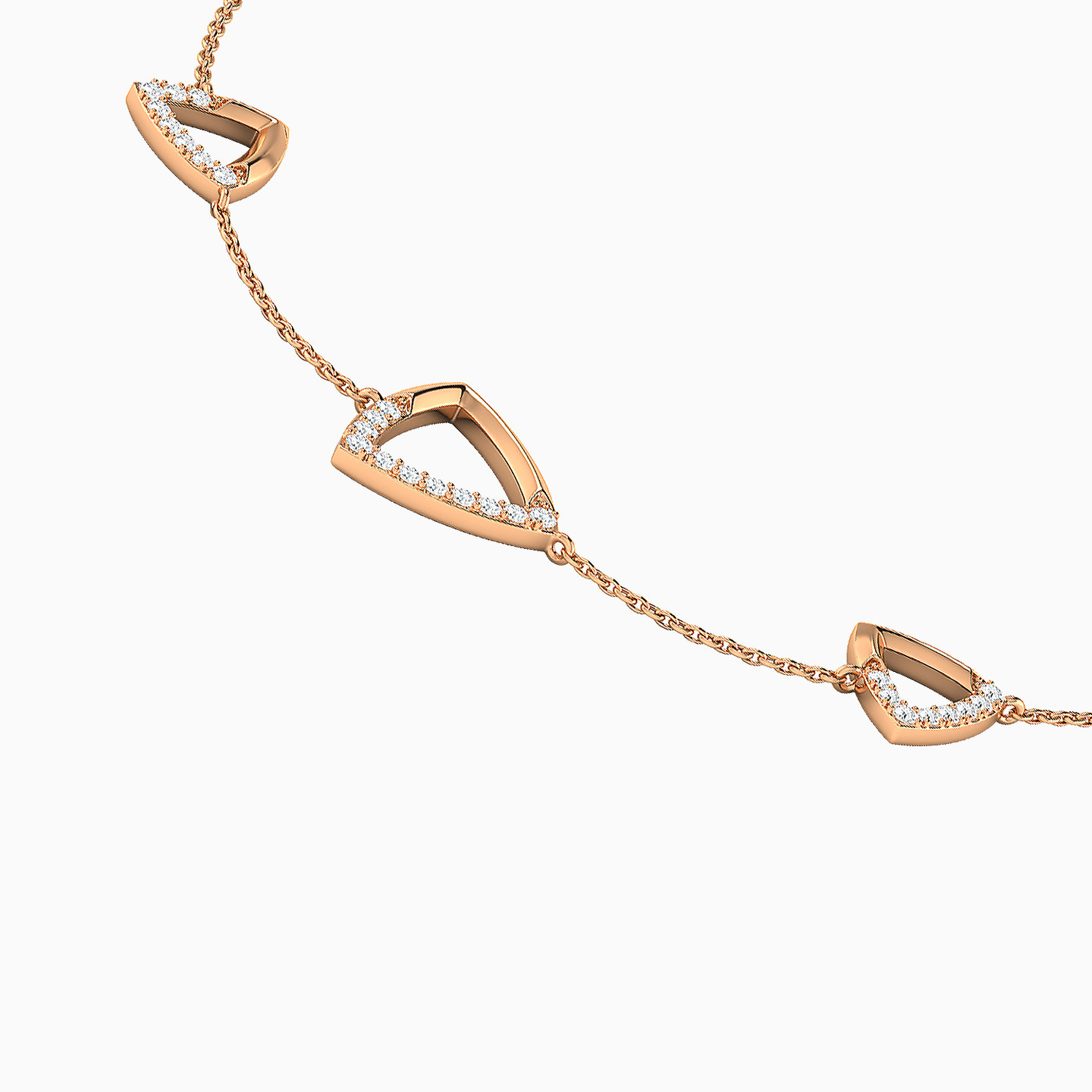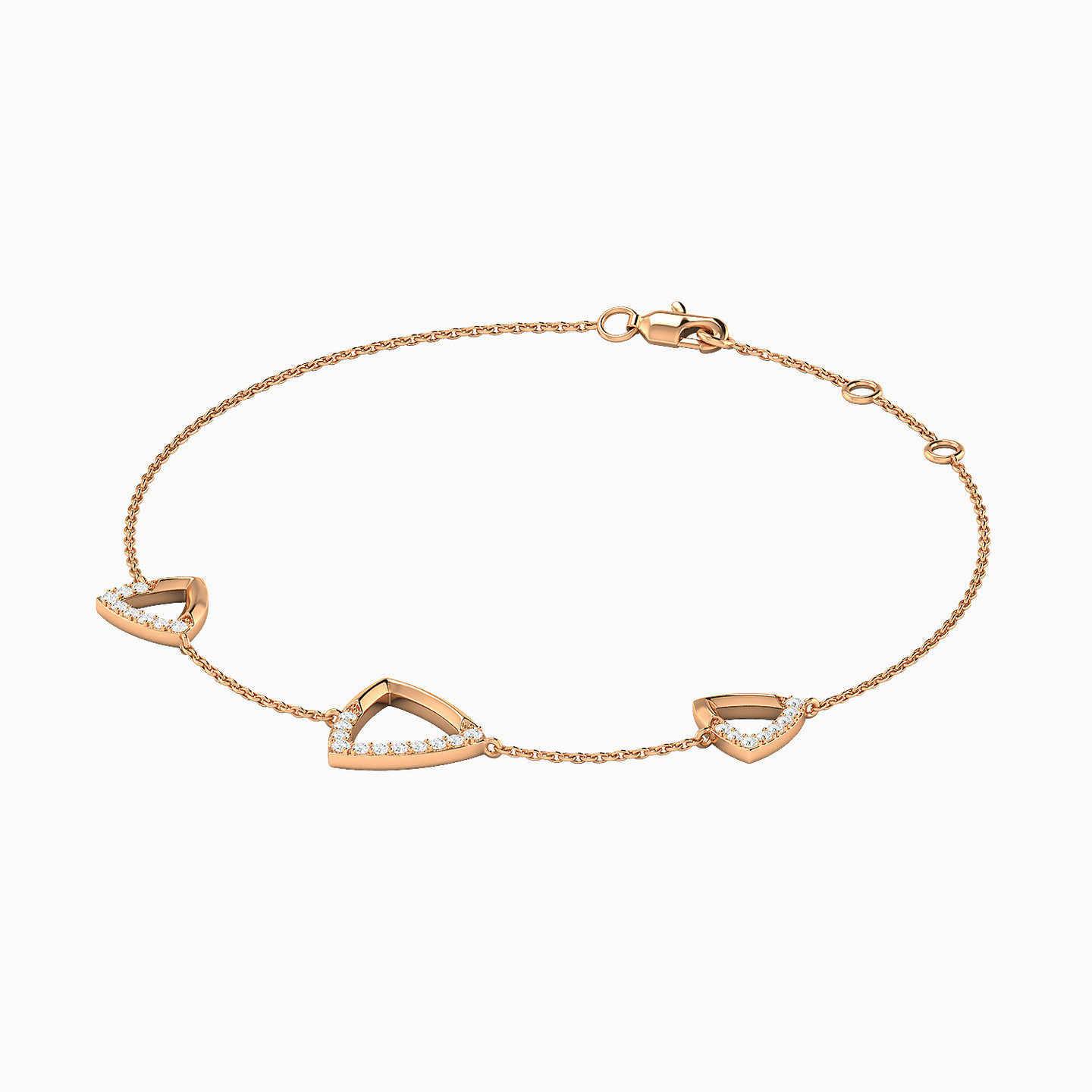 Add a touch of luxury to your wrist with this captivating diamond chain bracelet from L'azurde Diamonds. Beautifully crafted in 18-karat rose gold, this stylish bracelet features a trio of triangular shapes dotted with brilliant cut diamonds. We predict you'll be reaching for this feminine chain bracelet to elevate daytime and evening looks.